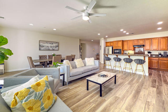 All Dates Currently Available after May 5, 2026. Terra Lago Single Level 5 bedroom, 2 bath Pool, Spa home! STR Ready offered Turnkey Furnished! Price listed is Off Season, call for High Season price. Upgraded with Luxury Laminate Flooring, Neutral Paint & Decor! Great Floor Plan by Lennar, Open Concept, awesome for Entertaining and Relaxation! Cook's Kitchen with Island, Granite Counter tops, Breakfast Bar, lots of Storage and Counter space! Fridge Included. Great Room with Fireplace, Ceiling Fan. Slider door off Great Room, Dining area to access Private Pool/Spa! All Bedrooms are generously sized! Primary Bedroom is King Sized, Primary Bath with Dual Sink Vanities, soaking Tub and Separate Shower. Large Walk in Closet. Laundry Room with deep soaking sink. 2 car attached garage. This home is a lovely home To Enjoy Rest & Relaxation! Nearby Shopping, Dining, Entertainment, Acrissure Arena, Public Pickle Ball, Basketball Courts, Public Parks/Tennis. Close to Hiking Trails!