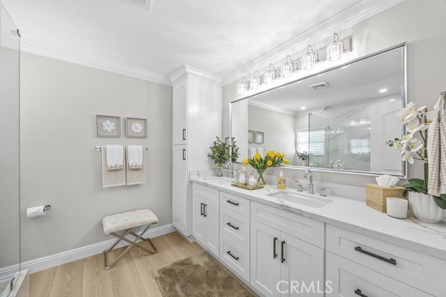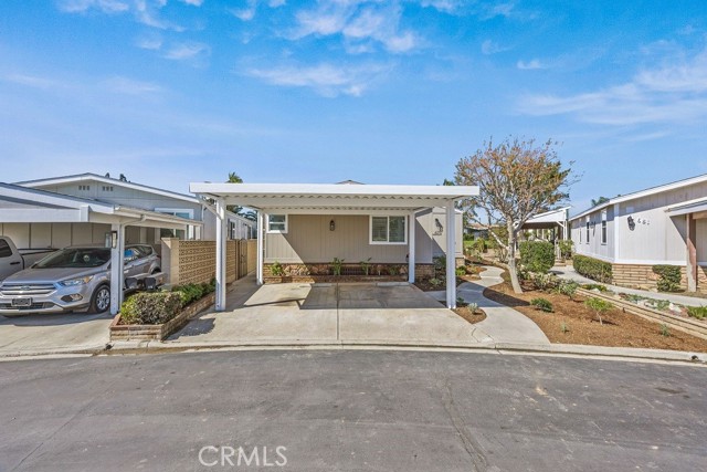 Senior Park Community 55+...Newly Remolded Home! Step into this stunning 2br., 2ba home featuring laminate flooring throughout, crown molding, beautifully painted in neutral tones. You will fall in love with this open concept kitchen, with quartz countertops, self-closing cabinets; all brand-new stainless-steel appliances, and a large center island perfect for entertaining family and friends. The Large Master bedroom features a spacious walk-in closet, in suite master bath completely remodeled, with double sinks, large walk in shower and linen closet. Down the hall is the guest bedroom and bath also remodeled, featuring a walk-in shower. The large laundry room features plenty of storage space. Extras include; new washer and dryer, including refrigerator with ice maker. New windows with custom blinds. Recessed lighting throughout. Newley landscaped with auto sprinkler system. Newly painted exterior. Side by side covered parking. Located on our lush green belt and just steps away from the lake and clubhouse. This home is move in ready and waiting for you!