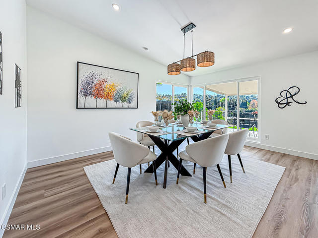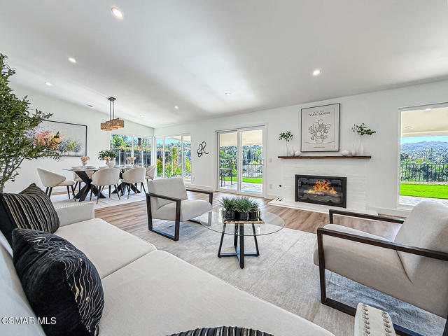 Panoramic views set the stage for this exceptional, fully remodeled single-story home in sought-after Woodland Hills. Rarely does a property combine forever mountain views, a true open layout, and extensive modern upgrades in one seamless package.This 4-bedroom, 2.5-bath residence has been thoughtfully reimagined from top to bottom, offering abundant natural light and an effortless flow ideal for both everyday living and entertaining. The stunning chef's kitchen features sleek European-style cabinetry, generous storage, and all-new Forno stainless steel appliances--including a striking 60'' refrigerator--opening directly to the family room and casual dining area.Every detail has been refreshed: new interior and exterior paint, a new front door, interior doors, custom closet and pantry shelving, LED lighting throughout, and wide-plank engineered laminate flooring. All bathrooms have been completely redesigned with new tile, fixtures, vanities, lighting, and finishes.The formal living room is anchored by a brick-accent fireplace, with a separate formal dining room providing additional space for gatherings. The primary suite offers a peaceful retreat with direct access to the backyard and generous closet space. Room sizes throughout are spacious and well-proportioned.Outside, the low-maintenance backyard features turf landscaping, covered seating, and unobstructed mountain views--perfect for relaxing or entertaining. Additional highlights include a finished two-car garage with epoxy flooring, LED lighting, and a Tesla EV charger, along with new gutters, dual-pane windows, drought-tolerant landscaping, a Google Nest thermostat, Ring doorbell, and exterior camera floodlights.Ideally located near schools, parks, and shopping, this is a rare opportunity to own a turnkey view home in Woodland Hills. A must-see for buyers seeking style, comfort, and location.