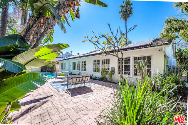 This private and secure compound features a beautifully maintained, freshly painted, bright, warm, and stylish 3-bed, 2-bath home with a den that can serve as a fourth bedroom or a dining room, just minutes from public transit, freeways, schools, shopping, dining, and entertainment. The area is also seeing redevelopment, offering future upside potential. The lushly landscaped grounds feature an entertainer's yard with a pool and spa, along with expansive open space perfect for kids to safely run around, host large gatherings, or simply enjoy life. Features include newer windows, a 2-year-old (owner-owned) solar system, updated air conditioning with a NEST thermostat, tankless water heater, custom lighting, and a remodeled primary ensuite bathroom. The finished 2-car garage offers a separate entrance, its own A/C system, abundant storage, and a Tesla charger. This versatile space could serve as a home office, bonus room, or possibly be converted into an ADU. This home is a rare find in today's market and won't be available for long.