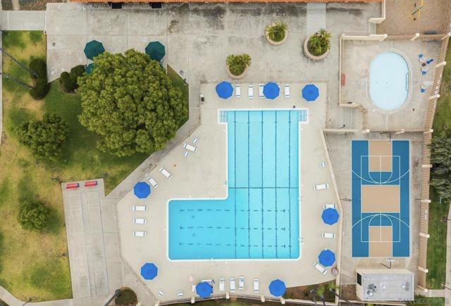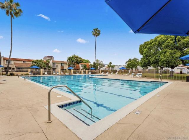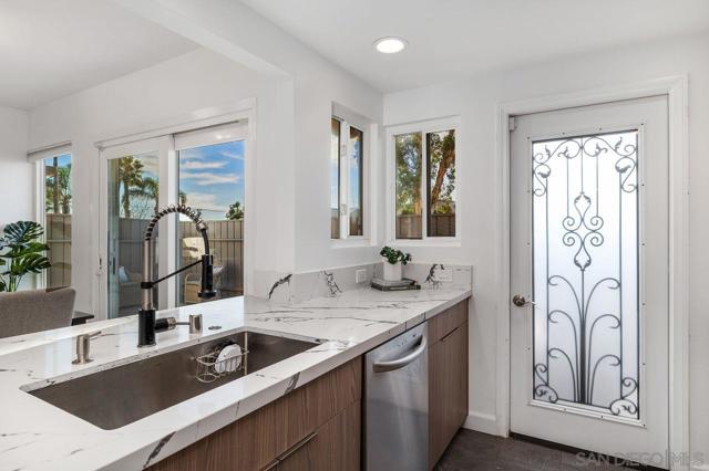 Spacious and thoughtfully remodeled two-story Pacific Bluffs corner unit that lives like a detached home! The generous private, enclosed patio offers exceptional outdoor space for dining, entertaining, gardening, or simply relaxing in the CA sunshine! A separate walk-in storage closet provides practical space for bikes, boards, and gear. Inside, the open kitchen and living area is filled with natural light, and the recently renovated kitchen includes quartz countertops, flat-panel cabinetry, a beautiful tile backsplash, and stainless steel appliances. The lower level features luxury vinyl plank flooring and recessed lighting throughout. Additional recent value-added upgrades include a tankless water heater with recirculator, a newer central heat pump and AC, newer TPO roofing, and fully owned solar panels!! A rare fully enclosed two-car garage offers epoxy-finished floors, drywalled walls, and a newer garage door. Upstairs are two bedrooms and a full bath, plus a convenient half bath on the main level. Both bedrooms access a west-facing deck—an inviting spot to enjoy sunsets. Pacific Bluffs residents enjoy an array of amenities, including an Olympic-size lap pool, children’s pool, playground, basketball court, shuffleboard, fitness room, game room, clubhouse, and library. Another plus - this unit is adjacent to TONS of guest spots! Note, tax records reflect this property as a single-family residence meaning better interest rates! Ideally located in the heart of Clairemont, with easy access to shopping, dining, and major freeways.