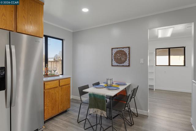 Located in a welcoming, family-oriented neighborhood in Martinez, this charming 3 Bedroom Home with a Bonus Room offers comfort, versatility, and room to grow. The interior features newer flooring and modern lighting throughout, creating a bright and updated feel. The updated kitchen includes stainless steel appliances and a functional layout that flows easily into the main living areas—ideal for everyday living and entertaining. The bathroom has also been tastefully updated. A spacious bonus room provides flexible use as a home office, playroom, guest room, or media space. The large framed attic area, accessible via a convenient pull-down ladder, offers excellent potential for additional living space, a future ADU-style conversion, game room, man cave, or expanded storage. Outside, enjoy a long driveway with ample parking, a fenced front yard for added privacy, and an oversized private backyard perfect for family gatherings, outdoor entertaining, and potential future expansion. Conveniently located with easy freeway access, this home offers both neighborhood charm and commuter convenience. With thoughtful updates, flexible living space, and exciting expansion possibilities, this Martinez home presents a wonderful opportunity in a desirable community.