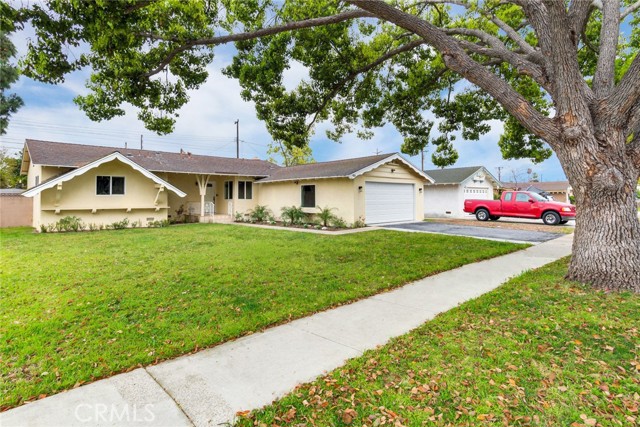 WOW — this might be the one! This stunning 3-bedroom, 2-bath, approximately 1,134 sq ft single-family home sits on an oversized 7,200+ sq ft lot — making it one of the most EXCITING lease opportunities around! Recently REMODELED and move-in ready, this home boasts modern upgrades galore: dual-pane windows and sliding doors, crown molding, sleek laminate flooring, sparkling quartz countertops with a breakfast bar, stylish white Euro cabinetry, stainless steel appliances (including a refrigerator), and a spacious walk-in pantry. Plus — new closet doors, a water heater, updated plumbing, a sprinkler system, new garage door, indoor laundry room, and custom painted bedrooms! The inviting living room shines with rich wood laminate flooring, a mounted TV setup, custom shelving, and a stunning ledger stone fireplace — perfect for cozy nights. Virtual staging was used in some photos to show possible furniture placement. Step outside to a dreamy backyard, featuring a covered patio, decorative concrete, low-maintenance synthetic grass, and a large grassy side yard — perfect for play or relaxation. Come See....