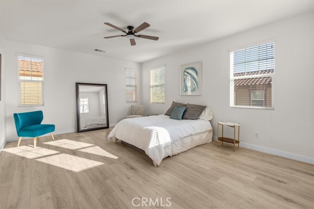 Now available for lease, this spacious, bright, and beautifully designed 4-bedroom, 3-bath detached home at 13044 Bramble St in Eastvale is ready for its next residents. This south-facing corner unit opens to a wide front area surrounded by lush community greenery, filling the home with abundant natural light throughout the day. The first floor features an open-concept layout that seamlessly connects the living room and kitchen, finished with light-colored flooring and fresh interior paint that create a clean, comfortable atmosphere and an enhanced sense of space. Upstairs, a generous loft offers flexible bonus space ideal for a home office, playroom, or media room, alongside well-proportioned bedrooms with thoughtful layouts. The outdoor patio area is a great spot to relax or entertain. The attached 2-car garage adds everyday convenience and solid storage. The owners have added a brand new washer, dryer, and refrigerator, all included, so you can move in without a single errand to run. The home is located in a clean, well-maintained community with a swimming pool, park, and easy access to transportation. Eastvale is one of the Inland Empire's fastest-growing cities, known for its highly rated schools, abundant new shopping and dining, and a rapidly developing city center anchored by the new City Hall area currently under construction. A rare opportunity to lease a large, move-in ready detached home in a community that has everything you need. Schedule your showing today.
