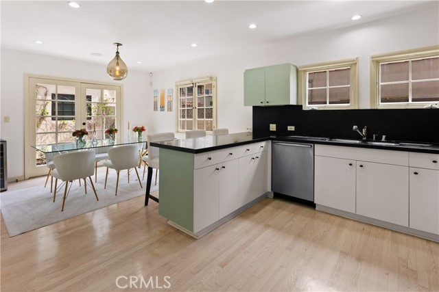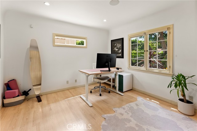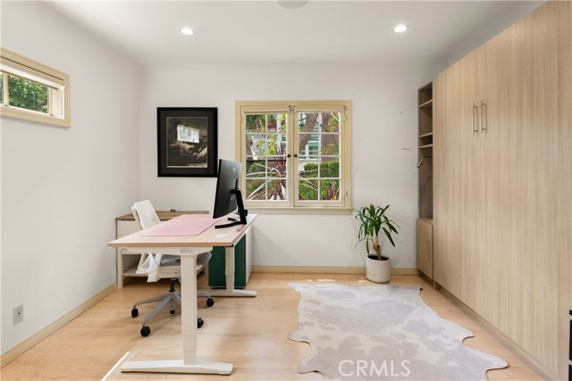 Tucked behind tall hedges and a private gate on one of West Hollywood’s most desirable residential streets, this beautifully remodeled and fully furnished front house of a duplex offers exceptional privacy, charm, and walkable city living. A lush garden pathway leads to the welcoming entry where classic architectural details blend seamlessly with modern updates. Inside, the home features wide-plank wood flooring, abundant natural light, and a spacious living room with fireplace, creating a warm and inviting atmosphere. The open-concept kitchen and dining area is perfect for entertaining, featuring sleek black countertops, stainless steel appliances, custom two-tone cabinetry, and a large breakfast bar. The dining space is framed by windows and French doors that fill the room with natural light and provide a seamless indoor-outdoor flow. The generous primary bedroom retreat features French doors that open to a private outdoor space surrounded by greenery, creating a peaceful escape in the heart of the city. A beautifully updated bathroom includes modern finishes and a glass-enclosed shower, while a second bathroom offers a relaxing soaking tub. A flexible bonus room works perfectly as a home office, creative studio, or additional guest space. Outside, enjoy your private hedged front yard, an ideal setting for relaxing or entertaining in complete privacy. Ideally located just moments from the shopping, dining, and culture that define West Hollywood. Explore the boutiques and cafes along Melrose Avenue, enjoy brunch at Urth Caffé, shop luxury retail at Beverly Center, or access world-class healthcare at Cedars-Sinai Medical Center. The restaurants and nightlife of Beverly Grove and West Hollywood are just minutes away. This is a rare opportunity to enjoy private, turnkey living in one of Los Angeles’ most vibrant and walkable neighborhoods. Offered fully furnished.