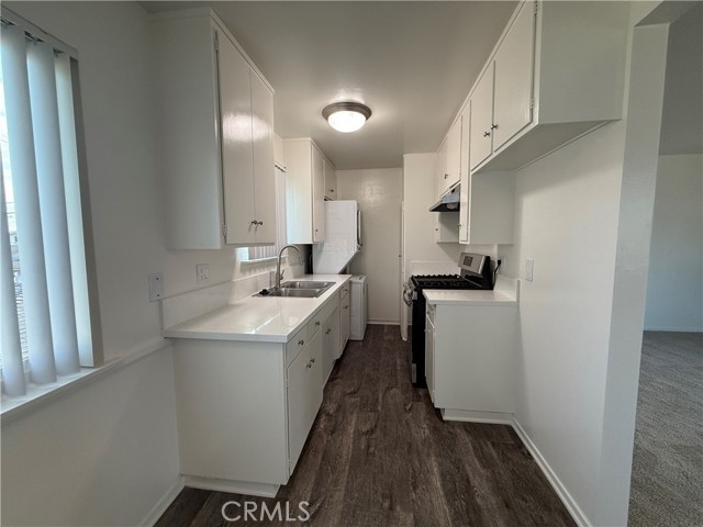 Eastside: Upper 2 Bedroom 1 Bath, Kitchen with Stove, Separate Dining with Ceiling Fan, Dinning Area with Ceiling Fan, Recessed Lighting, Vinyl Planking Throughout, Double Pane Windows, Vertical Blinds, Tiled Shower, Gray Shaker Vanity, Stackable Washer & Dryer, Assigned Parking Space, Near, Schools, Shops & Santa Ana Country Club.