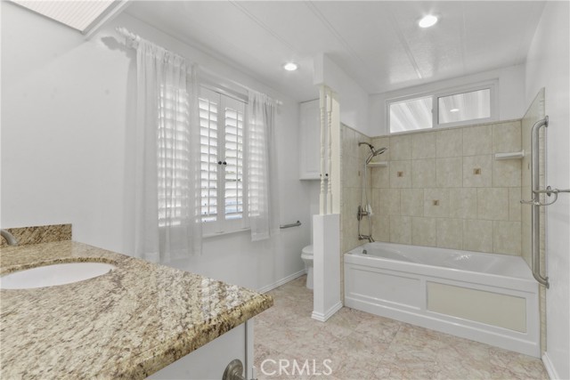 Gorgeous Double-Wide in Twin Oaks 55+ Community – La Verne Beautifully remodeled and truly turnkey! This spacious double-wide features new interior and exterior paint and new laminate flooring throughout, with tile flooring in the primary bath. The open floor plan offers a bright living room, separate family room/den, and a dining area conveniently located off the kitchen. The light and bright kitchen offers abundant cabinet space, gorgeous stone countertops, a gas cooktop, wall oven and broiler, microwave, refrigerator, and dishwasher. A spacious laundry room located off the kitchen includes additional cabinetry and storage, washer and dryer, and convenient access to the extended covered carport with parking for up to three cars and two large storage sheds. The primary bedroom suite features a large walk-in closet and an expansive bathroom with tile flooring, stone countertops, and a jacuzzi tub/shower combination. The second bedroom includes an attached bathroom that also serves as a guest bath with convenient access to the laundry room. There are two additional enclosed add-on rooms (not included in the square footage), both updated with separate entries. One features double French doors leading into the home and its own exterior entrance, while the other provides access to both the interior of the home and the backyard. These versatile spaces are ideal for an office, craft room, hobby area, or extra storage (no heat or air in these rooms). Additional features include four Solatubes in the living room, primary bedroom, den, and kitchen providing natural light, plus dual-pane windows with shutters throughout the home. New electrical plugs though-out the home Enjoy a rare private backyard with lawn and concrete patio accented with brick ribbons across the back—perfect for relaxing, gardening, entertaining, or pets. Plenty of room for patio furniture and a BBQ. Twin Oaks is a fabulous 55+ community offering wonderful amenities including a gorgeous clubhouse, large multipurpose room for social events, pool, jacuzzi, card room, billiards room, gym, men’s and women’s sauna, and shuffleboard court. Come enjoy resort-style living in this welcoming community! ***(Home is on property taxes. Current space rent: $799.53.)***
