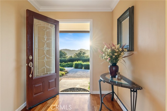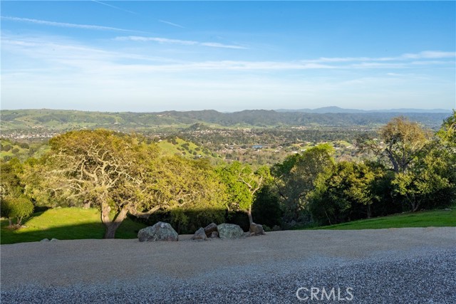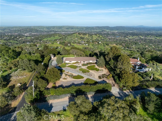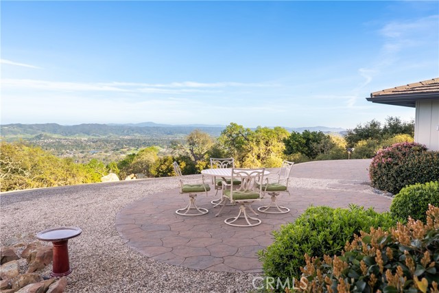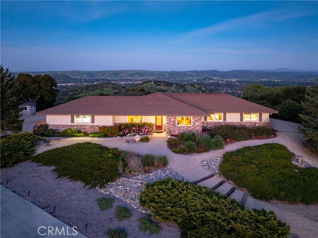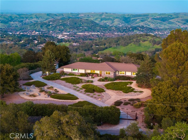 Welcome to 10605 San Marcos Road in Atascadero! Set on 1.9± acres, this single-level 3-bedroom, 2.5-bath home offering at least 2,000± sq ft showcases sweeping easterly and westerly views overlooking Sunken Gardens, Atascadero Lake, downtown Atascadero, and the surrounding hills. Accessed through a gated entry and long driveway, the setting combines scenic beauty with a spacious Central Coast landscape. Inside, large windows and sliding glass doors capture the dramatic views while filling the home with natural light. The living room features a gas fireplace and direct access to the outdoor patios, creating a comfortable space to relax while enjoying the surrounding scenery. Recessed lighting throughout enhances the bright and inviting interior. The family room with French doors provides additional gathering space, while the formal dining room overlooks the landscaped front yard. The kitchen includes a breakfast area and stainless-steel appliance package, offering a functional layout for both daily living and entertaining. The primary suite features a bathroom with a step-in shower, while the hallway guest bathroom offers dual sinks, generous cabinetry, and an oversized mirror. Two additional bedrooms provide flexible space for guests, a home office, or hobby room. Additional amenities include a dedicated indoor laundry room with cabinetry and a wine refrigerator, along with a conveniently located half bath. The home also features a finished two-car garage with epoxy floors and a workbench, providing space for parking, projects, or storage. A whole-house air filtration system adds another thoughtful upgrade. Per seller, a DECRA® Class A Stone Coated Roof was installed in 2007. Outdoor living is a standout feature with two separate rear patio sitting areas finished with stone pavers, both designed to take in the expansive lake, city, and hillside views. The grounds are studded with mature oak trees and feature rock and DG landscaping along with striking natural stone accents, including large boulders and moss boulders throughout the property. Additional improvements include a fully fenced parcel, storage shed with double-door entry, and a Generac propane backup generator with WiFi monitoring. This property offers spacious single-level living with remarkable Central Coast views just up the hill from downtown Atascadero!