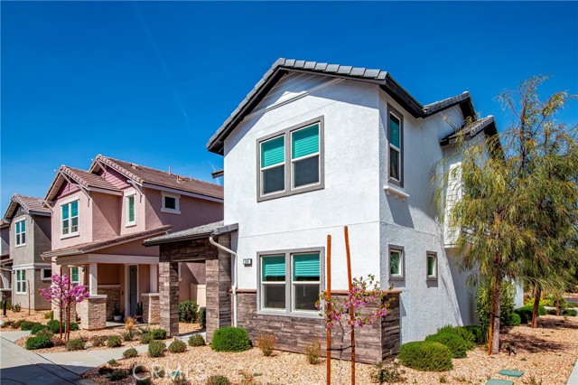 Welcome to 260 Summerville Lane, a beautifully designed two-story townhouse located in the highly desirable West Palmdale community. Featuring 3 bedrooms, 3 bathrooms, and an attached 2-car garage, this move-in ready home combines modern design, thoughtful upgrades, and exceptional energy efficiency. Step inside to a bright open-concept layout where the living room, dining area, and kitchen flow seamlessly together—perfect for both everyday living and entertaining. The heart of the home is a stunning designer kitchen featuring custom quartz countertops, a large center island with seating and integrated sink, and a striking natural stone backsplash. Stainless steel appliances, a chef-inspired gas range, and a sleek remodeled hood vent elevate the space, while matte black fixtures and hardware add a sophisticated modern touch. Architectural details including an arched pantry alcove, open wood shelving, and abundant storage provide both character and functionality. Recessed lighting throughout the home with dimmer controls allows you to easily customize brightness and create the perfect ambiance in every room, while a matte black chandelier anchors the dining area. A built-in water filtration system serves both the kitchen sink and refrigerator. Upstairs, spacious bedrooms offer comfort and privacy, complete with recessed lighting and generous closets. The primary suite features a walk-in closet and a spa-inspired bathroom with dual sinks, a soaking tub, and separate shower. A second dual-sink bathroom serves the additional bedrooms, and a dedicated upstairs laundry room with washer and dryer adds everyday convenience. Designed for efficiency and modern living, the home also includes: • 17 leased solar panels for energy efficiency • 2 leased Tesla Powerwall batteries installed in the attached 2-car garage • Central AC with dual-zone HVAC system for enhanced comfort and temperature control • Private low-maintenance backyard • Built-in doggy door for pet convenience • Outdoor electrical outlets, including a roof outlet for easy holiday lighting • HOA-maintained front landscaping for easy living. Ideally located just minutes from shopping, dining, and major freeway access, this home offers the perfect balance of comfort, convenience, and community living. A rare opportunity to own a beautifully designed, energy-efficient home in one of West Palmdale’s most desirable neighborhoods.