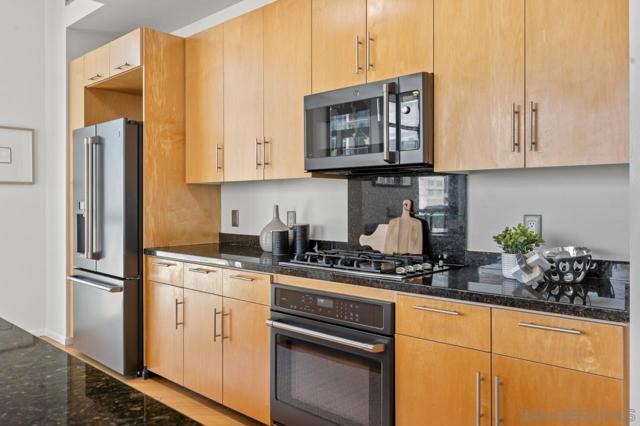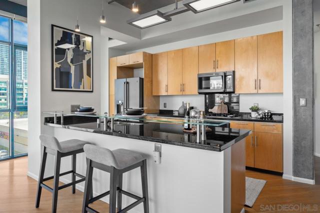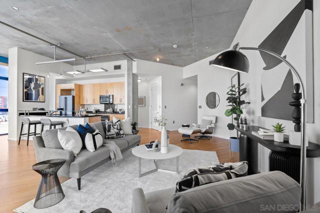 Rare corner unit with a wrap around patio in the highly desirable M2i building, located in East Village! Designed with an industrial flair, this unit features 11 foot ceilings and stunning floor-to-ceiling windows that flood the space with natural light all day long. With the potential to add an additional bedroom and the open layout, unit 503 offers flexibility for any buyer. Additional highlights include tandem parking, conveniently located on the 1st level, and a large storage unit. Residents of M2i enjoy access to a fully equipped remodeled gym, two lobbies, luscious courtyard, and a rooftop patio complete with a firepit, and BBQs. Don’t miss your chance to own this unique home in the heart of Downtown San Diego!