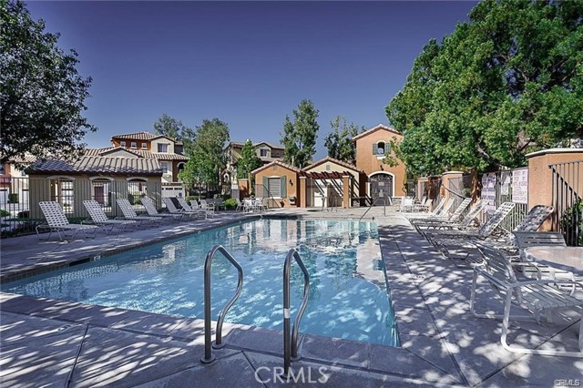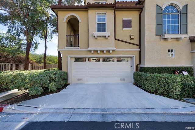 Enjoy elevated living in the highly desirable Valencia Village Walk community! Perfectly positioned in one of the most desirable locations in the complex. This beautifully upgraded 2-bedroom, 2.5-bath tri-level townhouse offers scenic views of the landscaped hillside with no front neighbors, creating a rare sense of privacy and tranquility. Step inside to a bright & inviting interior filled with natural light and tasteful upgrades, including travertine flooring, plush upgraded carpeting, mirrored wardrobes, and a spacious walk-in closet. The stylish gourmet kitchen features granite countertops, a full tile backsplash, stainless steel appliances, recessed lighting, elegant white cabinetry with decorative hardware, and a convenient breakfast bar—perfect for both everyday living and entertaining. The kitchen flows effortlessly into the dining and living areas, where large windows showcase lush greenery, and the welcoming living room features a raised hearth fireplace and sliding doors leading to your private patio. Ideal for relaxing evenings or weekend gatherings. A thoughtfully designed mid-level study nook with a built-in desk and cabinetry provides the perfect work-from-home space. Upstairs, both spacious bedrooms feature ceiling fans and private en-suite bathrooms with granite countertops, offering comfort and privacy for residents and guests alike. The upstairs laundry room adds everyday convenience. Additional highlights include direct access to a full-size two-car garage with extra storage space. Residents of Village Walk enjoy resort-style amenities, including a sparkling pool, relaxing spa, and direct access to scenic Paseo walking and biking trails. Ideally located just minutes from the I-5 freeway, award-winning schools, premier shopping, dining, and entertainment, this home offers the perfect blend of comfort, convenience, and lifestyle. Move-in ready and available soon—don’t miss the opportunity to live in one of Valencia’s most sought-after communities!