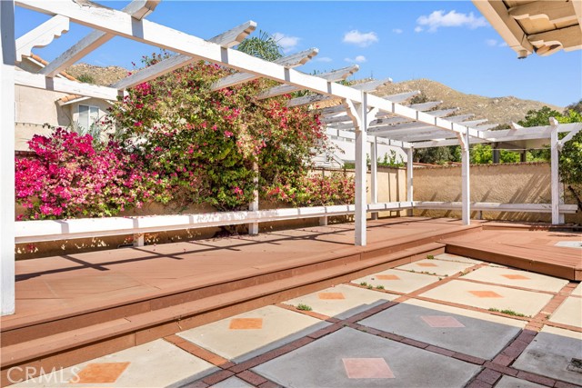 Welcome to this updated single-story home in Moreno Valley, offering mountain views and a lot size of over 10,000 sqft. This 3-bedroom, 2-bath residence features an open floor plan with high ceilings and abundant natural light. The living, dining, and kitchen areas are connected, providing a functional layout for everyday living. the kitchen includes updated cabinetry, countertops, and a center island. The primary suite offers a spacious layout and a private bathroom that is generously sized and includes a skylight, creating a bright and open feel. The backyard includes fruit trees, a covered patio, BBQ area, and a water feature, providing a versatile outdoor setting. Situated on a corner lot at the beginning of the street, the property offers a sense of openness and accessibility. The home features a bright interior, private outdoor space, and convenient proximity to school, shopping, dining, parks, and major freeways.