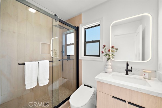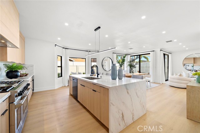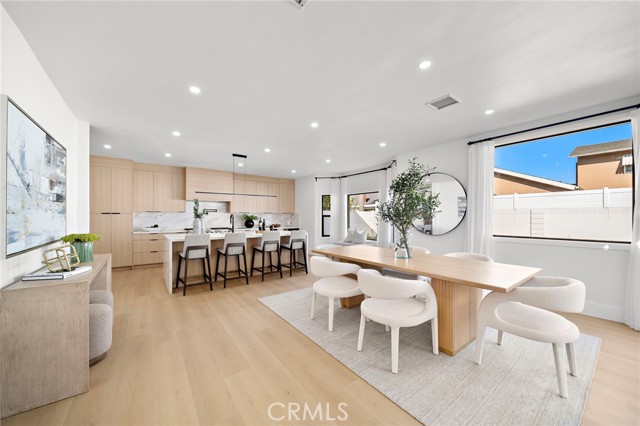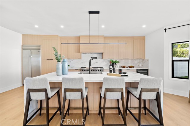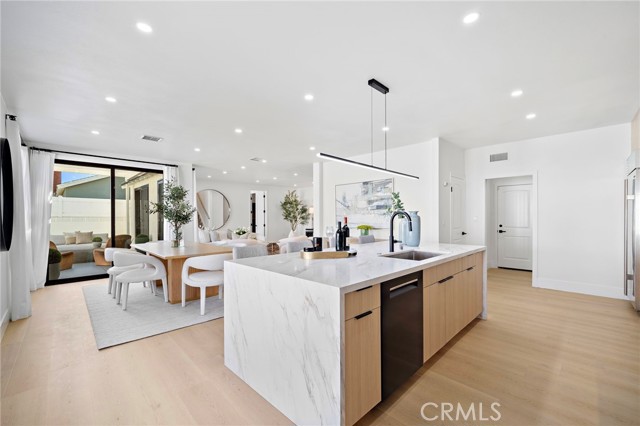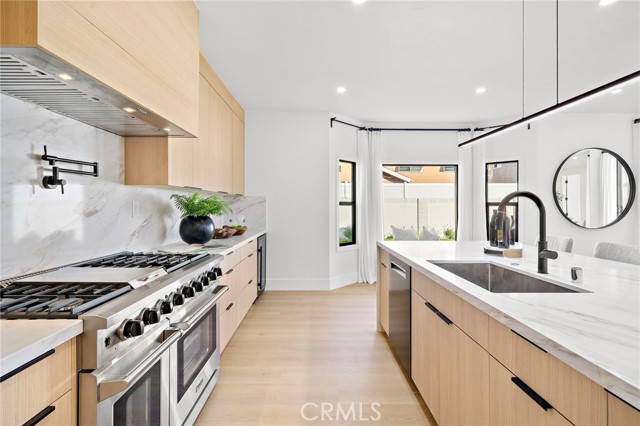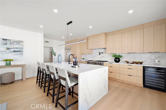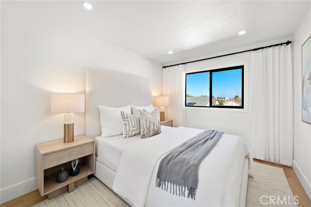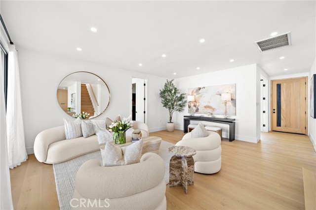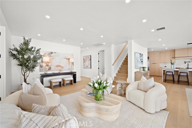 This Crisp Contemporary California Classic home has been beautifully remodeled and upgraded throughout! As you enter the massive private gated courtyard you are immediately impressed by the tranquil ambiance this home has to offer. Exceptional open concept living space affords the ultimate in relaxed elevated living. Rich white oak premium LVF plank flooring flows seamlessly throughout the residence. The kitchen is an absolute showstopper with a massive center island with waterfall edge detailing. Sleek Malaysian Calcutta Veneta Quartz counter tops allow for ample counter space. The rich modern cabinetry is custom built with soft close features. High end appliances including Sub Zero Refrigerator, Thor restaurant grade range and Bosch dishwasher. Full quartz backsplash with pot filler and beverage cooler completes the space. The primary suite is conveniently located downstairs and has a large walk-in closet with built in storage. The primary bath is spa like in design and offers a lovely soaking tub, walk in shower with designer selected tile and dual vanity and sink areas. Opulent sconce lighting and designer selected fixtures and fittings. The downstairs office is ample in size and can be utilized as a bedroom. If the buyer would like the seller will install a custom closet for the buyer. Upstairs you will find two additional generously sized bedrooms and another fully remodeled bath. The rear grounds of the property offer another large patio area and lush rolling lawns for you relaxation and entertainment needs. There are new black frame double pane windows and sliders and new window coverings. The roof is brand new and comes with a full warranty. There is a new electrical panel, new furnace, new water heater and new air conditioning unit. All work was done to code and fully permitted by the City of Huntington Beach. Come and enjoy all that Huntington Beach Coastal living has to offer in this truly turnkey home!