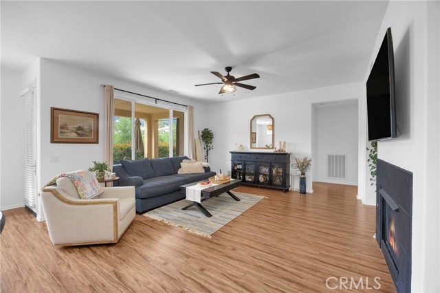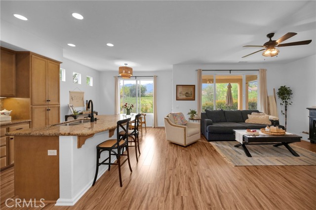 Welcome to this beautifully situated 2-bedroom, 2-bathroom downstairs unit offering 1,404 sqft of comfortable living space, ideally located with golf course views. Situated within a desirable 55+ community, this home offers a well-maintained and peaceful setting. The home features a light-filled, functional layout with a spacious living area that flows into the kitchen and dining space. The primary suite has a private access to the backyard. The private patio overlooks the golf course and surrounding greenery. Residents enjoy access to HOA amenities including a pool, fitness center, and community events, providing a convenient and connected lifestyle. With its ground-level access, golf course views and desirable community amenities, this home stands out for its overall setting and functionality.