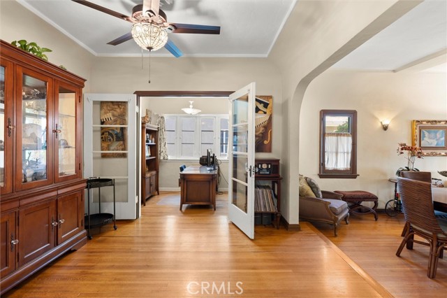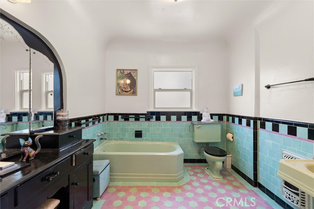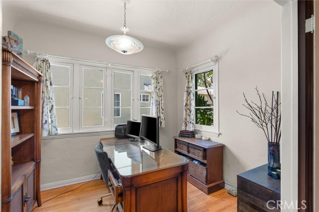 Huge 2 bed 1 bath Spanish home - over 1300 square feet! - with Art Deco features on large lot in welcoming neighborhood of North Long Beach. Large living room with tray ceilings and original Art Deco sconces frame the large front picture window and handsome wood framed windows in this expansive room. Gorgeous hardwood floors with dark wood inlays and Spanish tiles on step up to dining area bring a rich feel to this historic home. Huge bathroom features built-in vanity, full tub and separate tile shower all adorned in original tiles and vintage sink, tub, and toilet. Light and bright separate dining room off kitchen can easily function as a 3rd bedroom or nursery, plus you still have another room to function as an office or another bedroom! Nice sized bedrooms both feature spacious closets and artistic raised plaster "wedding cake" decorations on the walls and ceilings. This home is a true vintage gem! The back yard is so big that it has a large patio area perfect for entertaining and still has a large grassy area for pets, kids, and gardening. Off street parking for 2-3 cars in driveway plus a 2 car garage! This house is lovely just the way it is and also has tons of potential to add on with 2nd bathroom or explore converting garage to ADU!