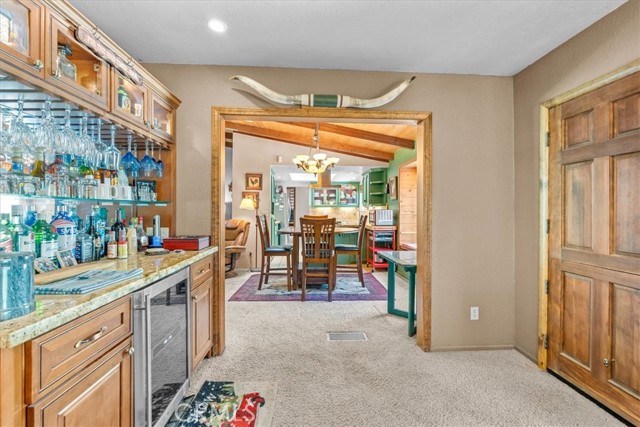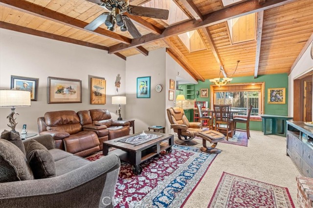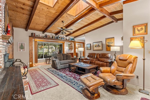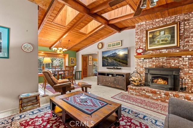 I FOUND YOUR NEEDLE IN A HAYSTACK!! CHECK OUT THIS SINGLE STORY GEM WITH 5 BEDROOMS, 3 BATHROOMS, 2 CAR GARAGE AND CARPORT AND A FRONT YARD THAT'S LIKE A PARK!!! A/C, multiple fireplaces and more parking than you shake a stick at! Multiple primary suites, vaulted ceilings, skylights, open beam features and knotty pine tongue and groove ceilings in the living room create Mountain vibes while giving turn key feelings! Large indoor laundry room, updated kitchen finishes annnndddd....a bonus Den for entertaining or game day!! This home is situated in the heart of the Village, with a quick 10 minute walk to the center of town and all it has to offer!! Not too far, but far enough, from the Highway for easy access no matter the season. Surrounded by second gen Ponderosa Pines, the front yard also offers an awesome covered front porch, built in bench seating, drip system, waterfall pond, mature fruit trees and a neatly paved brick meander through all of the bulbs and hardy greenery! Well loved and implacably maintained, large laundry room, and bonus storage area down below with concrete for the Holiday decor!! All of this, all on one story, with a story book front yard and THE PERFECT BLEND of form and function create your once in a decade listing, all priced appropriately for a house of this caliber! Friendly neighbors, turn key conditions all in the picturesque village of Wrightwood!!