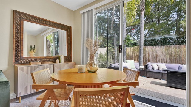 Situated in the highly sought-after Encore at Marina Hills, this end-unit residence offers an exceptional blend of location, livability, and opportunity within one of Laguna Niguel’s most desirable communities! Featuring 3 bedrooms and 3 bathrooms across a well-designed two-story floor plan, the home includes a highly desirable main-level bedroom and full bath – ideal for guests, a home office, or flexible living. The spacious living room is enhanced by soaring vaulted ceilings, creating a light and open atmosphere, and flows seamlessly to the kitchen and spacious back patio overlooking mature trees and lush greenery. An oversized attached two-car garage provides ample storage with cabinets and overhead racks, and the highly desirable end unit offers added privacy and natural light. Upstairs, two generously sized bedroom suites provide comfort and privacy, including a primary suite with vaulted ceilings, dual vanities, and a private balcony nestled among the trees, offering a peaceful and secluded retreat. Thoughtfully maintained and move-in ready, this townhome is a fantastic opportunity and price for a 3-bedroom home in Laguna Niguel just minutes away from the beach, shopping, dining, hiking and biking trails and all that beautiful South OC has to offer. Residents of Marina Hills enjoy access to resort-style amenities including a pool and spa, tennis and pickleball courts, parks, playgrounds, and scenic walking paths—all within a vibrant, coastal-close community.