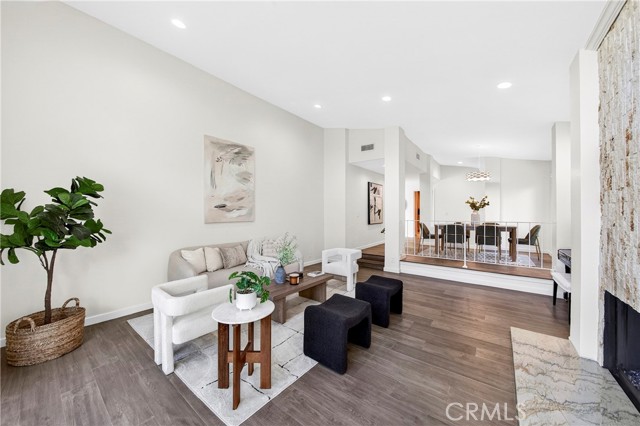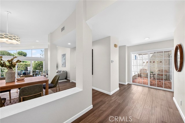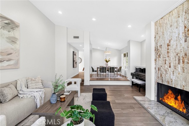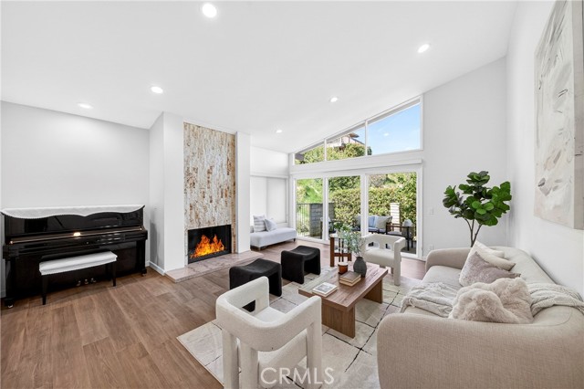 Beautiful and very private, this rare single-level home is located in the gated community of "The Hill" in desirable Rancho Palos Verdes! This charming home features 3 bedrooms and 2 bathrooms with 1,834 sq. ft. of living space. Recently updated for a contemporary look, it boasts new flooring, a vaulted ceiling, and a custom travertine marble fireplace. Adjacent to the living room is a formal dining area that leads to a sunny atrium with French door entry. The kitchen includes Silestone counters, tile flooring, recessed lighting, and stainless steel appliances. The very spacious master bedroom, also featuring a vaulted ceiling, includes a large walk-in closet and hardwood flooring, as well as a remodeled bathroom with dual vanity marble countertops and floors. Enjoy a private patio with a greenbelt view, just a short walk to the sparkling association pool, Jacuzzi, and tennis courts. The second bedroom has an adjacent remodeled bath, and there is a spacious third bedroom as well. Direct entry from the 2-car attached garage enhances convenience, with only one neighboring unit adjacent. This fabulous home is within walking distance of the Peninsula Shopping Center, which offers theaters, shops, and dining. It also provides easy access to Hawthorne and Crenshaw. Showing by Appt only. Come by Saturday 12-4pm. Please contact agent Cecilia (310) 990-4736 for access to community