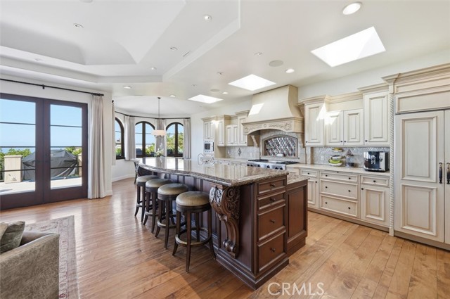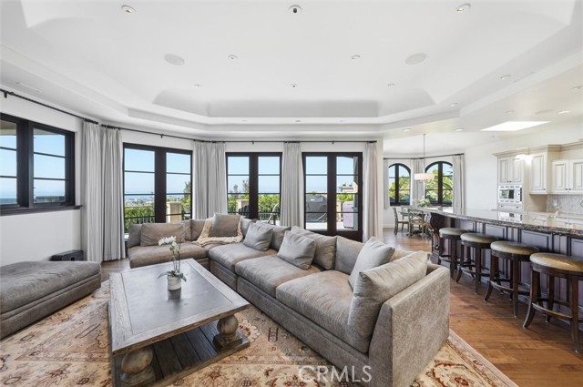 Located in the prestigious Hill Section of Manhattan Beach, this stunning Mediterranean estate offers panoramic ocean views stretching from Palos Verdes to Catalina. Situated on an oversized 7,503 square foot lot, this 5,586 square foot home combines timeless architecture, exceptional space, and an ideal coastal indoor/outdoor lifestyle. A dramatic entry welcomes you with travertine floors and a sweeping curved staircase, setting the tone for the home’s elegant design. The ground level features four bedrooms and a spacious family room that opens to the west-facing backyard, creating seamless indoor/outdoor flow. The backyard includes a jacuzzi and offers plenty of room for a pool, making it ideal for outdoor living and entertaining. The primary suite opens directly to the backyard, creating a private retreat. Upstairs is the main living level designed to capture the panoramic views, featuring the kitchen, family room, formal dining room, ocean-view office with custom wood built-ins, theater room, and a flexible space that could serve as a fifth bedroom. The open floor plan flows to a large ocean-view terrace, perfect for entertaining, dining, and enjoying sunsets over the Pacific with views of Palos Verdes and Catalina. Hardwood and travertine floors run throughout the home, and a basement level provides additional space ideal for a gym, wine cellar, and extra storage. With its oversized lot, expansive square footage, panoramic views, and prime Hill Section location, this is a rare opportunity to own a premier Manhattan Beach view property just minutes from downtown Manhattan Beach, award-winning schools, and the beach.