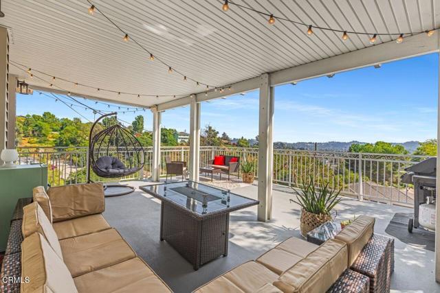 Experience the ultimate urban retreat in this tastefully updated three-bedroom, two-bath home perched in the hills of Highland Park. Boasting expansive, wide-ranging views of Northeast LA, this residence seamlessly blends sophisticated design with functional 'work-from-home' versatility. The light-filled interior features new plank vinyl flooring throughout and a thoughtfully remodeled kitchen outfitted with sleek quartz countertops.Significant recent upgrades include remodeled bathrooms, new lighting, new gutters, and fresh patio epoxy. A standout feature is the clever re-imagining of the lower level, now a dedicated private office complete with a one-half bath and closet--ideal for modern professionals, alongside a single car garage. Additional storage has also been crafted above the office. The oversized entertainer's patio serves as a massive outdoor living room, offering an incredible backdrop for gatherings. Located just moments from York and Figueroa's best coffee shops, eateries, and convenient grocery options, this home offers the ideal balance of hillside serenity and city accessibility.