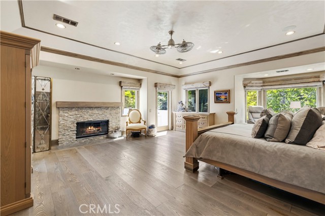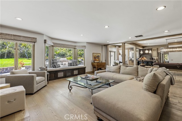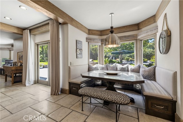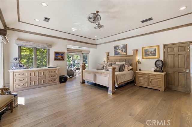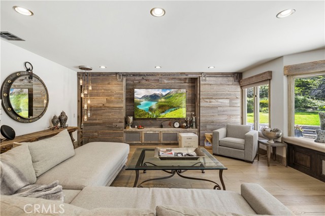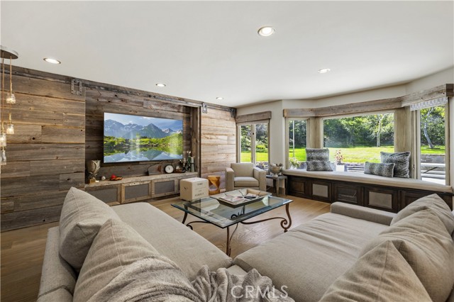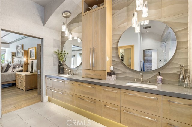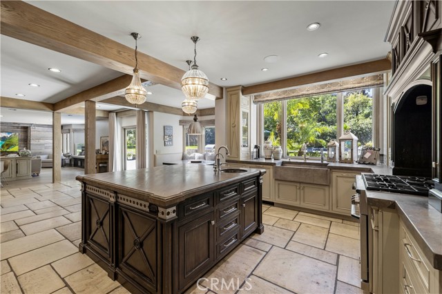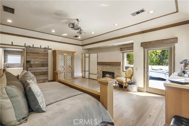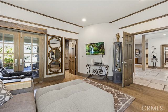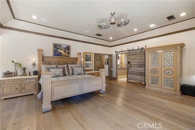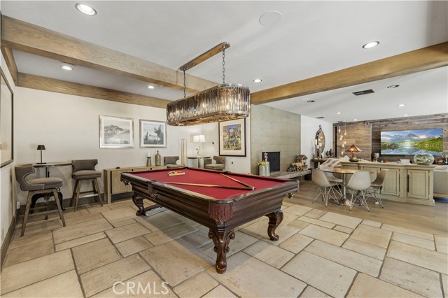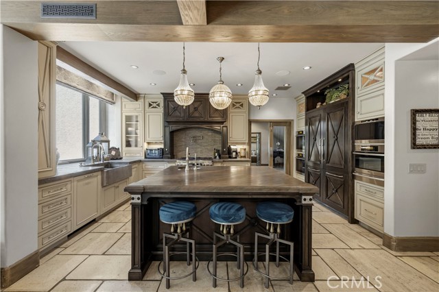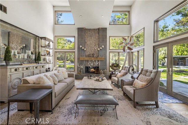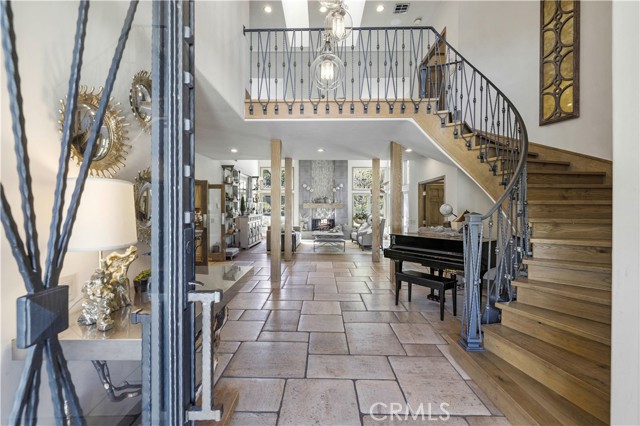 Welcome to your dream home in the prestigious Sand Canyon neighborhood! This California contemporary estate offers 5,134 sq ft of living space on a nearly 9-acre private and fully fenced property with serene mountain views. The gated drive leads to a grand circular driveway featuring a centerpiece fountain. A gorgeous custom metal front door opens into a sun-drenched great room with soaring ceilings, oversized windows, double doors leading outside, and a stunning custom statement fireplace, perfect for gathering or effortless entertaining. The formal dining room flows seamlessly from the main living space. The main level includes two well-appointed ensuite bedrooms with custom built-ins. The chef’s kitchen is a true showpiece with a soapstone island, natural stone countertops, and custom cabinetry all opening seamlessly to the breakfast nook and family room. Enjoy the 6 burner Dacor range, double ovens, dual refrigerator/freezer, steamer and generous pantry storage. The expansive family room features exposed beams, a custom feature wall, an architectural fireplace with extended hearth, and a bay window seat. Upstairs, an airy loft overlooks the great room. The primary suite is a private sanctuary with a fireplace, balcony views, and a sun patio with above-ground spa. A generous walk-in closet leads to a flexible bonus room. The ensuite bath offers dual vanities, a separate soaking tub, steam shower with rainfall feature and towel warmer, plus a laundry chute for added convenience. There are three additional bedrooms on the second floor, including one en-suite. Outside, enjoy a sprawling lawn, resort-style pool and waterfall spa, built-in BBQ, and a sport court lined for basketball and pickleball. A detached workshop/5-car garage, RV electrical hookup, and generator system (with potential backup to the main house) complete this exceptional property. Whether you’re dreaming of unforgettable gatherings, space for hobbies and toys, or a true retreat surrounded by nature, this property delivers a rare lifestyle in an exclusive neighborhood!
