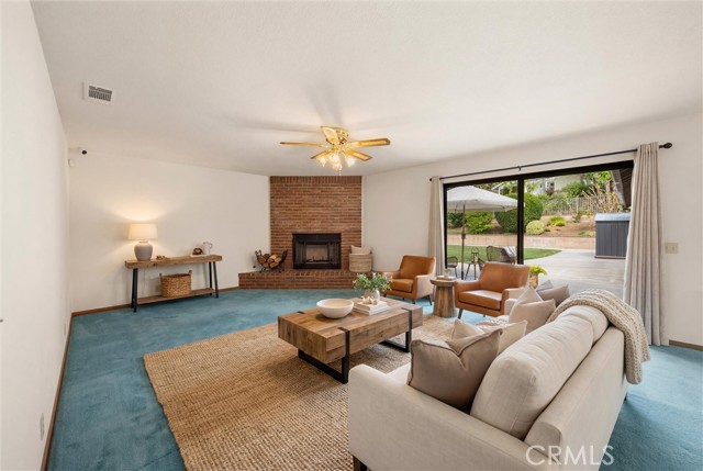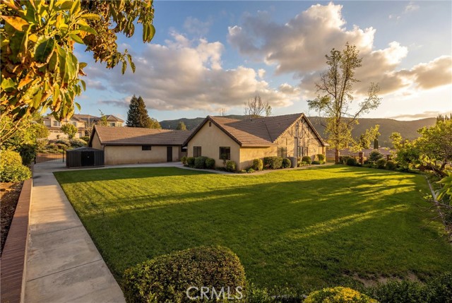 Custom-built single-story home located in the prestigious Hidden Meadows community, offering 3,270 sq ft of living space on a 21,000 sq ft lot. Originally built as a vacation home and lightly lived in, the property showcases quality construction with timeless brick and iron exterior details. This well-maintained residence features an inviting entry way, spacious living room filled with natural light, a kitchen with walk-in pantry, dining area, and family room or den. Fireplaces in both the living room and den add warmth and character, while a dedicated laundry room adds convenience. The home includes 4 bedrooms and 3 bathrooms and includes a spacious primary suite with walk-in closet, dual sinks, soaking tub, and separate shower. Additional features include a 3-car garage with built-in storage, RV parking with hookups, dual water heaters, and an A/C unit installed approximately 5 years ago. The backyard offers lush grass with room to build a pool, and space to enjoy the beautiful sunset views. Pictures do not do this property justice. Come tour and see all the craftsmanship and possibilities for yourself!