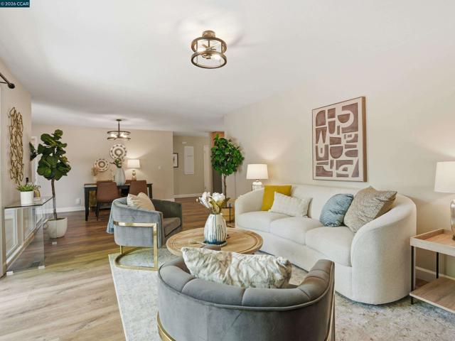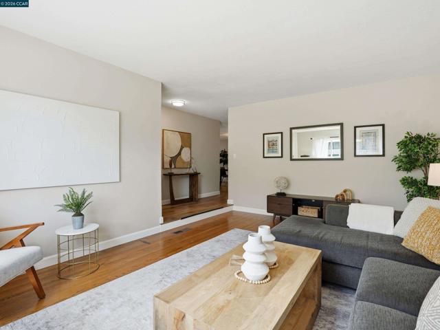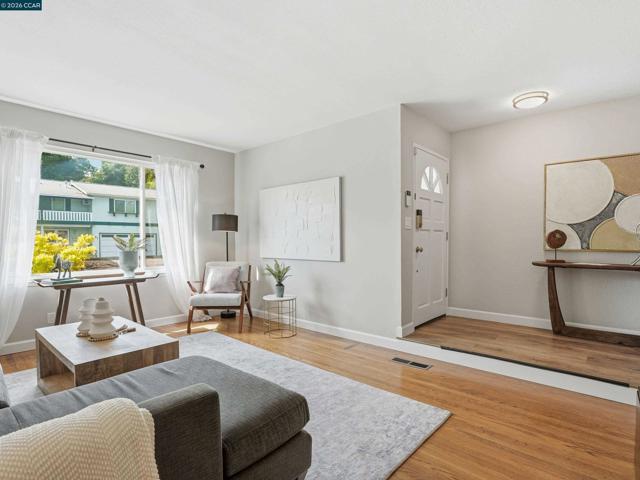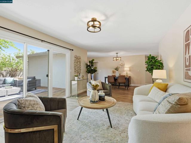 Located in the highly desirable Virginia Hills neighborhood near the Pleasant Hill–Lafayette border, this single-level 3-bedroom, 2-bathroom home offers a seamless blend of comfort, style, and functionality. The light-filled interior features an open-concept layout with warm luxury vinyl flooring, recessed lighting, and effortless indoor-outdoor flow. The updated kitchen is centrally positioned and showcases refreshed quartz countertops and a stylish backsplash, connecting easily to the living, dining, and family rooms—ideal for both everyday living and entertaining. From here, step out to a spacious deck perfect for gatherings, overlooking a private backyard with mature trees, garden space, and room to add a pool, ADU, or sport court. The primary suite includes an updated bath, while additional bedrooms offer flexibility for guests, family, or a home office. Additional highlights include owned solar with two battery backup systems, dual-pane windows, central heat and A/C, updated electrical, and a two-car garage. Move-in ready and ideally located close to top-rated schools, shopping, dining, trails, and Briones Open Space, this home delivers both convenience and long-term livability.