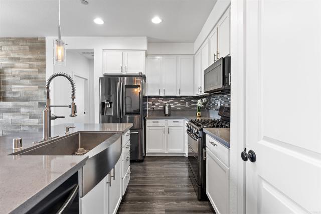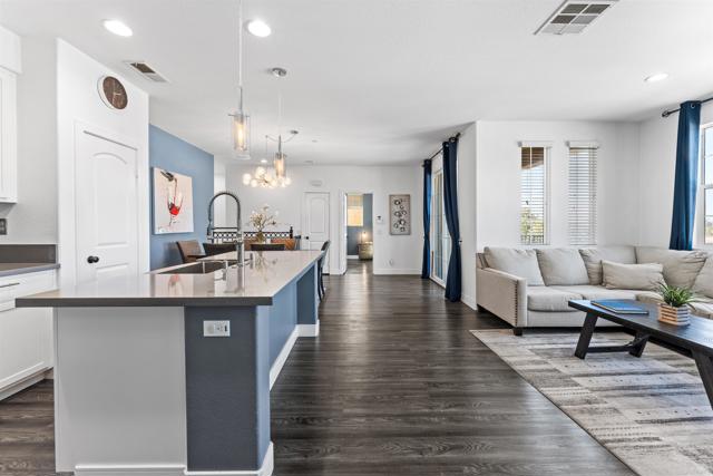 Beautifully upgraded 2-bedroom residence located in the desirable Avalon community of Otay Ranch. This thoughtfully updated home features quartz countertops, stainless steel appliances, luxury vinyl plank flooring throughout, elegant wrought iron stair railings, and a convenient stackable washer and dryer. Recent improvements include a newer tankless water heater, newer AC system, newer water softener, newer dishwasher, and newer refrigerator. The home is also equipped with a MyQ smart garage door opener for added convenience and security. The spacious primary bedroom showcases an open-concept bathroom suite with dual vanities and a walk-in closet complete with custom built-in shelving. Additional highlights include a private one-car garage, an extra assigned parking space, and a secluded balcony with unobstructed north-facing views. Avalon is FHA and VA approved and offers an array of resort-style amenities, including tennis and basketball courts, a fitness center, swimming pool, playground, and clubhouse.