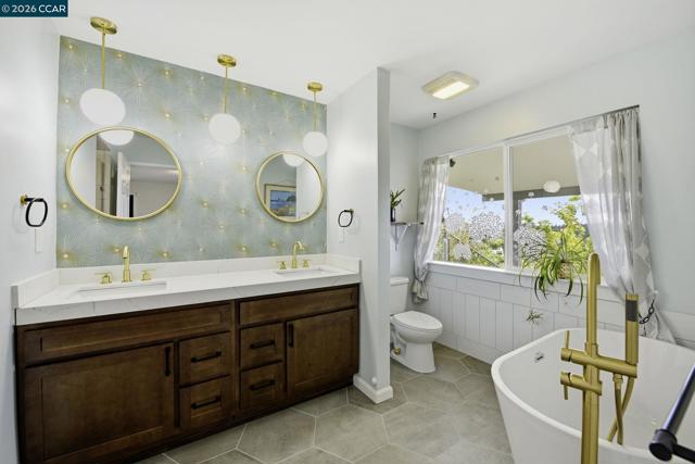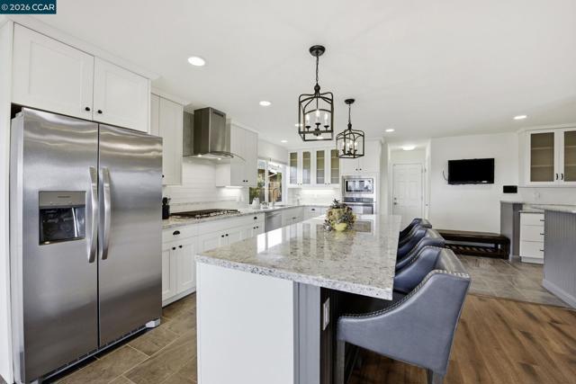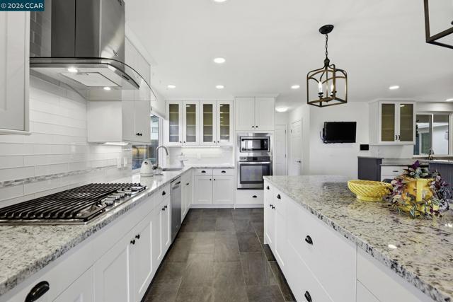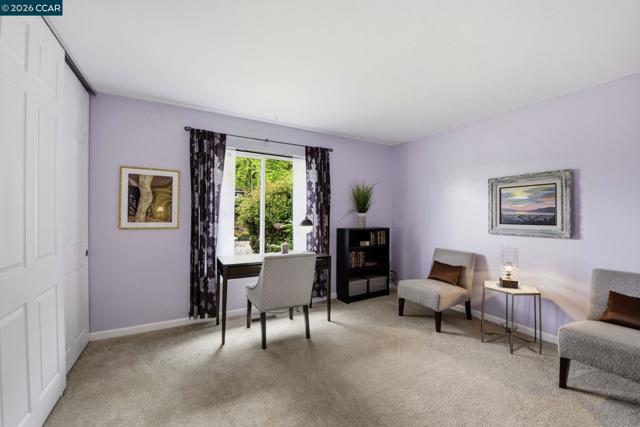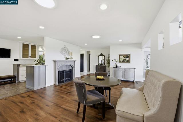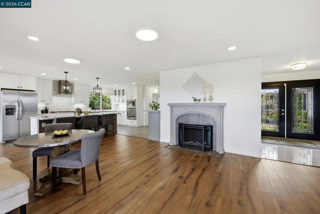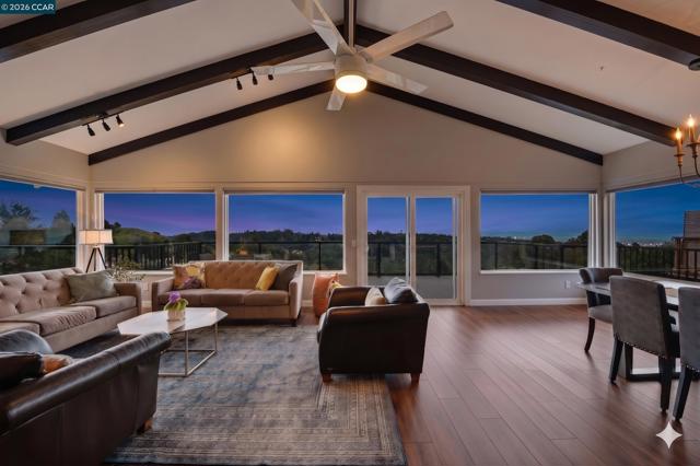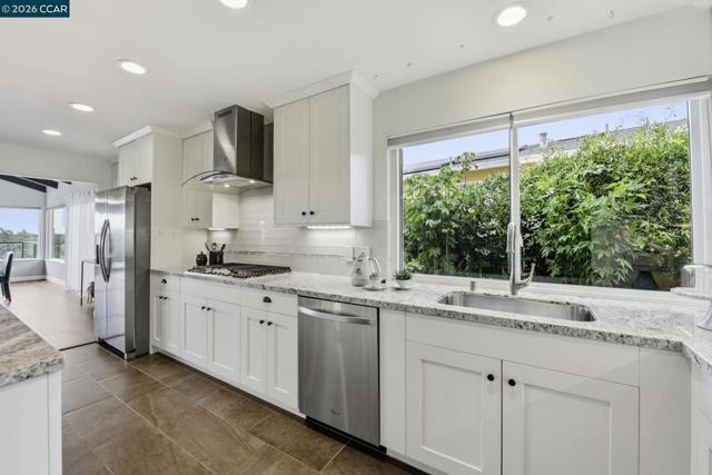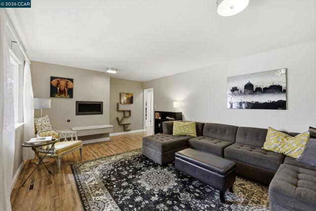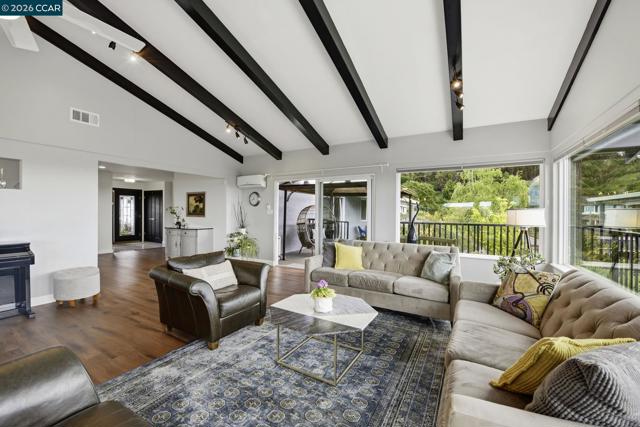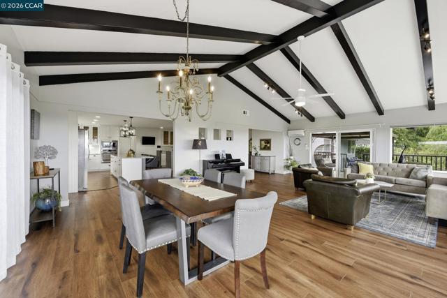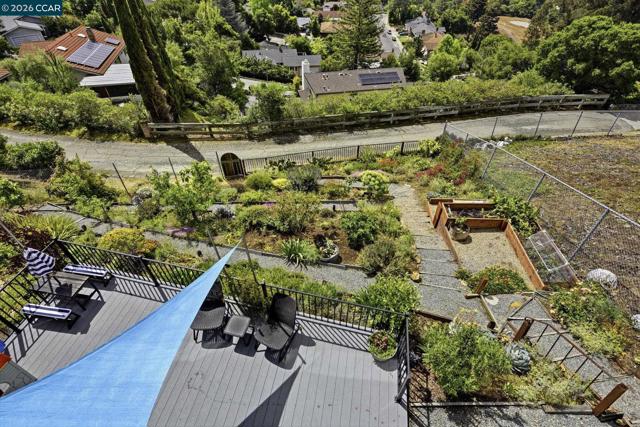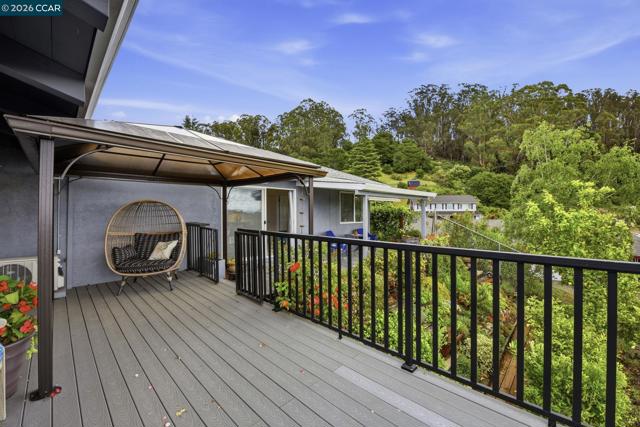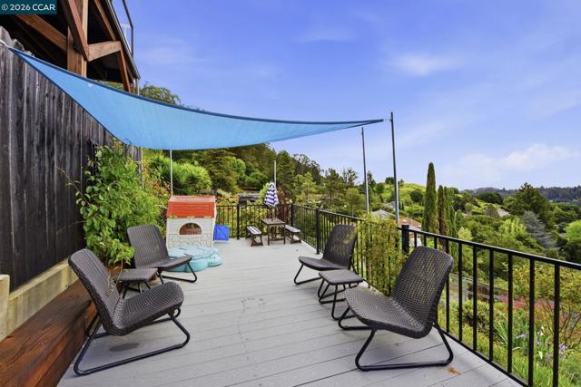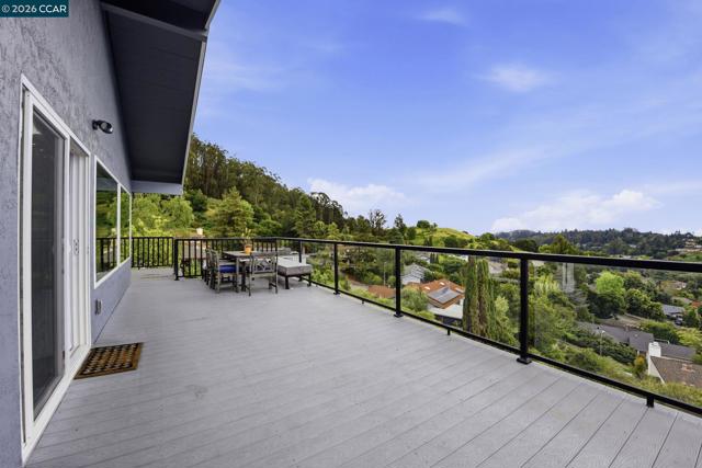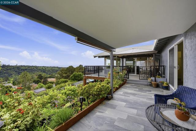 Expansive views take center stage in this beautifully updated single-level 4-bedroom home, tucked away on a quiet court. Designed for indoor-outdoor living, the property features a private enclosed courtyard and two rear decks, ideal for gathering, dining, and taking in the surrounding landscape. From the moment you enter, the views draw you through the home. Vaulted ceilings, large picture windows, and sliding glass doors flood the space with natural light and create a seamless connection to the outdoors. The layout flows past the dining area into an open-concept kitchen with a large island, breakfast nook, and separate butler’s pantry, all opening to an expansive great room. Step outside for al fresco dining on the deck, overlooking a lush backyard with fruit trees and seasonal blooms. The flexible floor plan includes a separate living room and a privately positioned owner’s suite with direct patio access. Three additional bedrooms and two remodeled bathrooms are located on the opposite wing. Owned solar, newer roof and windows, and a location offering access to nature, recreation, and commuter routes, all within the peaceful Sequoyah Heights setting. Close to Hwy 580, Oakland Zoo, and Skyline trails. Come see this home today!