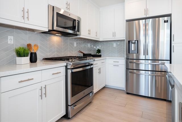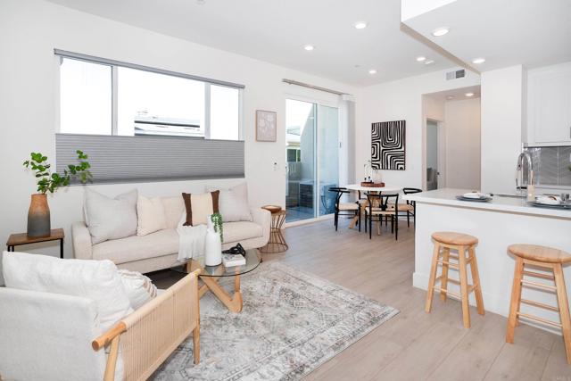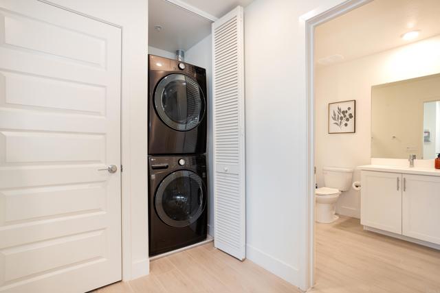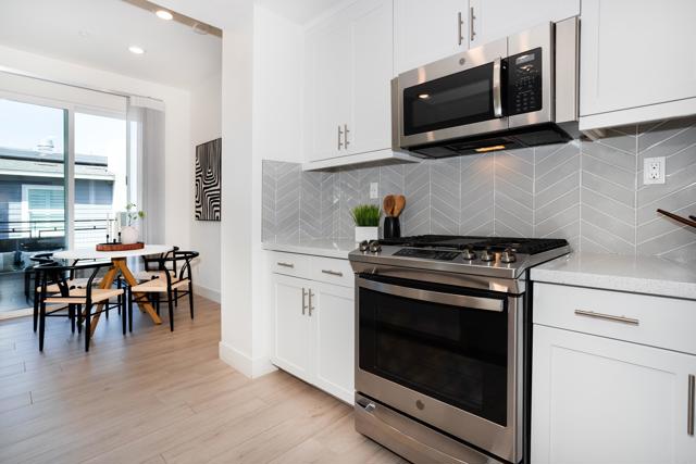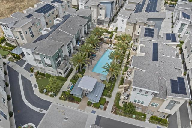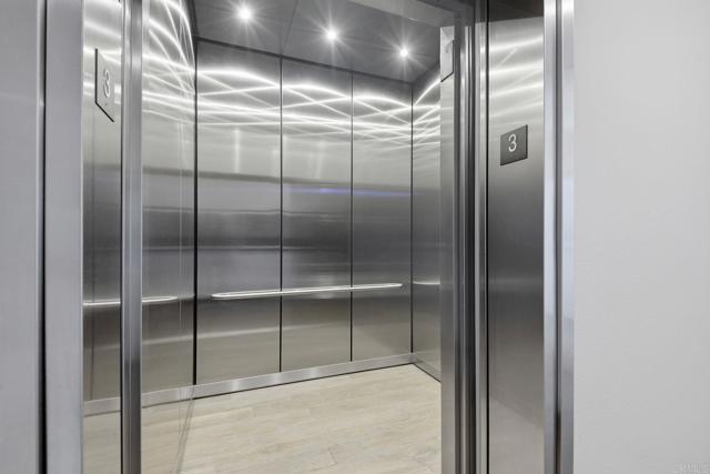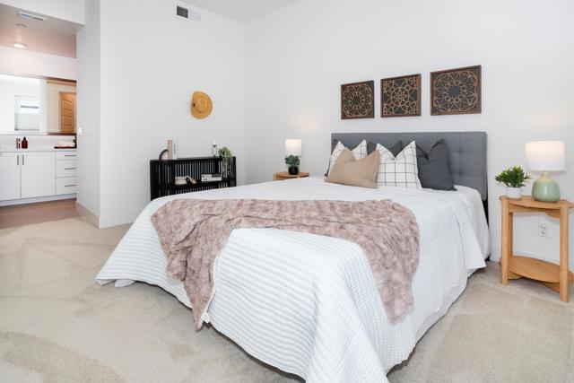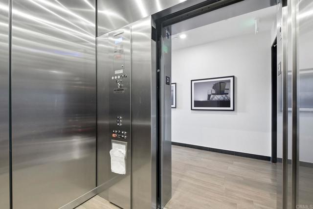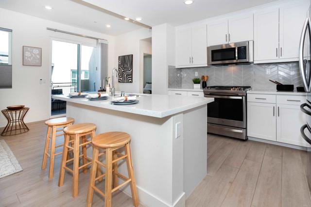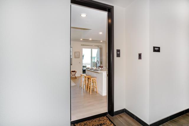 Single level luxury living at the penthouse level - elevator access. Built in 2020 this stacked low-rise building are 'The 'Flats.' An exclusive limited number of units within Kensington At The Square Bressi Ranch, The Flats offer elevator access from garage level up to two floors of stacked units. This top floor pristine unit is a fully upgraded smart home. The split floor plan adds privacy with each bedroom suite on opposite sides of the main living space. Thoughtfully designed with a spacious great room featuring warm wood like tile flooring complemented with solid wood white shaker cabinetry. Neutral quartz countertops in kitchen and baths. Enjoy the private covered balcony with western exposure where natural light flows seamlessly from outside to inside. Two extra large bedrooms have generous closet storage and luxurious extra plush carpeting. Primary bedroom features a large walk in closet. Stacked interior laundry center along side a large walk in storage closet. The building has an external secure lobby entrance with a My2N intercom system to allow for guest and delivery access from a smartphone application. Weekly janitorial service. Paid solar. Oversized 2-car garage including a work bench, storage cabinets and 5 overhead storage racks. Garage has been equipped with e-car charging wiring - ready to install a car charger device of your choice. The garage is at entry level with an interior hallway that leads to an elevator up the two floors of stacked units. Absolutely exquisite and unique lifestyle located in the heart of Bressi Square and Bressi Town Center - all the convenience of shopping, dining, entertainment and more! Community resort pool, bocce ball court, BBQ's, picnic tables and playground to enjoy. Minutes from Carlsbad beaches, top notch luxury golf resorts, LegoLand, outdoor outlet shopping mall, nature preserves and lagoons. Enjoy the Carlsbad lifestyle in this luxury newer construction Flat.