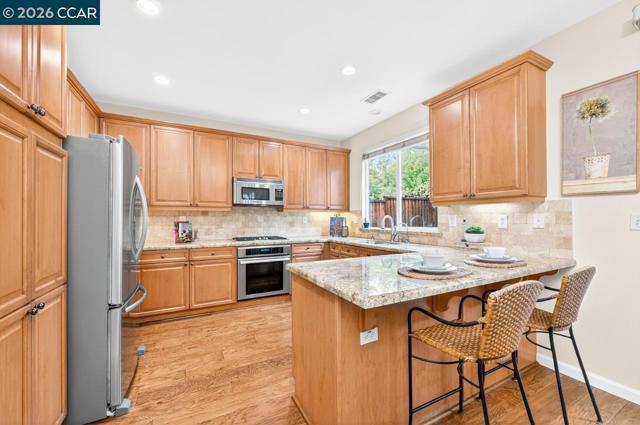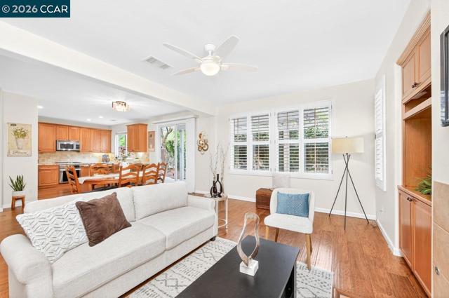 A place to truly put down roots! This attractive 3-bedroom + loft, 2.5-bath home is back on the market, offering the perfect blend of style, comfort, & functionality. Freshly painted in neutral tones & enhanced with modern light fixtures creating a bright and welcoming atmosphere. Step into the inviting living room with vaulted ceilings, timeless hardwood floors, & elegant plantation shutters, an ideal space that exudes warmth & sophistication. The open kitchen and dining area are equipped with high-end appliances & a peninsula counter, perfect for both everyday living & entertaining. A cozy gas fireplace adds charm to the main family room, while the convenient laundry suite enhances daily practicality. Retreat to the spacious primary suite, complete with a walk-in closet, soaking tub, and a generously sized shower. Enjoy outdoor living with a charming front porch and a private backyard with no rear neighbors, perfect for relaxing or hosting guests. The home is also energy-efficient with Tesla solar. Located in a vibrant & welcoming neighborhood designed for connection, residents enjoy access to a community pool ideal for gathering with friends & neighbors. Conveniently situated near top-rated schools, shopping, and major commute routes, this home truly has it all.