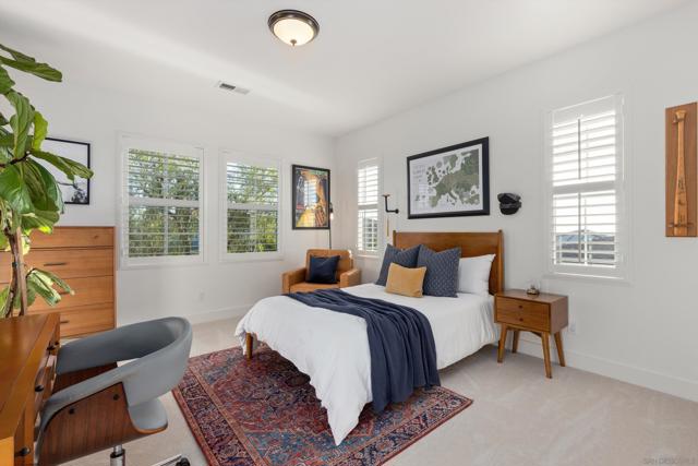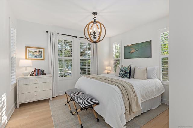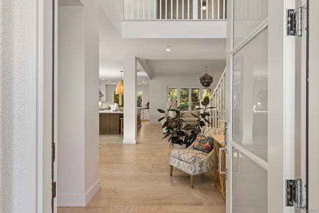 This is coastal living done right, thoughtfully designed from the ground up with the kind of architectural detail that stops you at the curb and keeps you there. The New Zealand Hawaiian and coastal plantation-inspired exterior sets the tone: richly detailed, open, and built for the way people actually live on the coast. Inside, the open floorplan flows naturally from great room to kitchen to the outdoors through cascading walls of glass and a covered veranda that connects everything together. The kitchen features a stylish oversized island perfect for entertaining, with a wall of glass behind the sink that opens directly to the veranda. Fresh air, ocean breeze, and a cold drink at the outdoor bar, all within arm's reach. The primary bedroom suite is on the main level, a true retreat with a spa-inspired bath, walk-in shower, and a generous walk-in closet. Step outside directly from the bedroom onto the covered veranda and the indoor-outdoor connection is seamless. Also on the first floor: a guest en-suite, dedicated laundry, and an office or flex room tucked on the tandem side of the garage. Everything you need, all on one level. Upstairs, a large game and media room anchors the second floor and naturally splits the space. On one side, you have a private en-suite bedroom. On the other hand, two additional bedrooms that share a full bath. The game room opens onto a comfortable ocean-view deck. Owned solar. Square-corner walls with skip-trowel finish. Large-scale windows throughout. Every detail was considered. Outside the front door, you're minutes from world-class surf breaks and the beaches along the historic Highway 101, with modern shopping and dining just as close. It's the best of both worlds, the active, healthy coastal lifestyle without giving anything up. 1 Channel Island is one of Encinitas' premier communities, and this home is one of its finest.