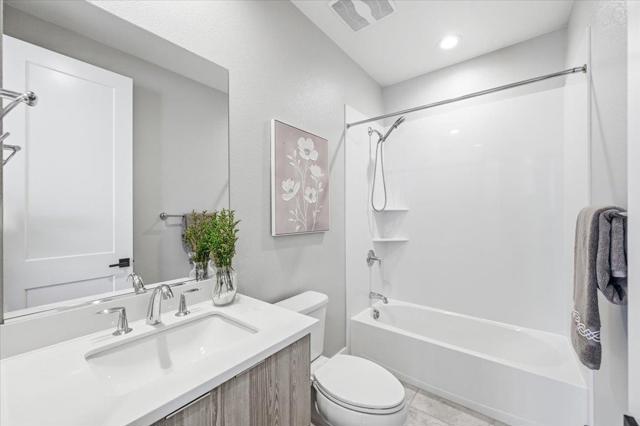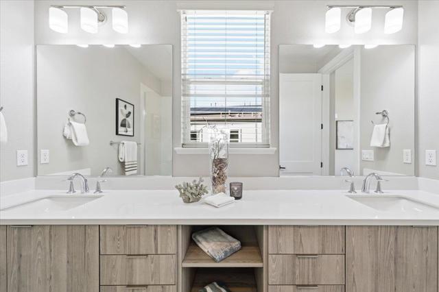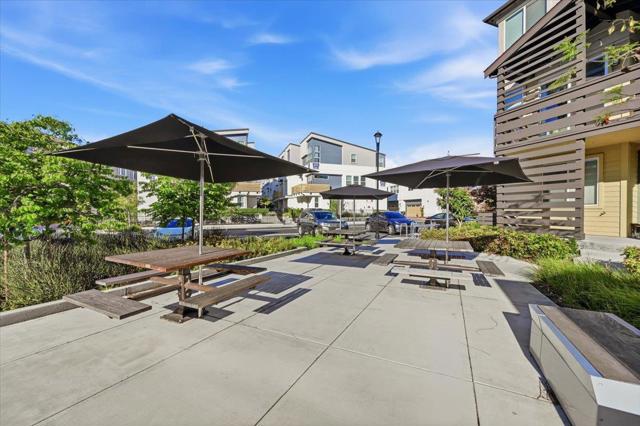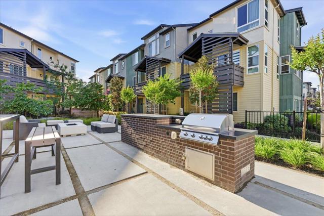 Bright and spacious corner townhome featuring abundant windows and natural light throughout. The ground level offers a versatile den/office, ideal for a home workspace or additional living area. The main level showcases an open-concept layout where the living and dining areas flow seamlessly into a separate family room with direct access to a private outdoor patioperfect for everyday living and entertaining. The gourmet kitchen boasts a large quartz island and countertops, stainless steel appliances, and ample cabinetry for storage. Upstairs, youll find three well-appointed bedrooms, including a private primary suite with a walk-in closet and dual-sink vanity bath. Additional highlights include a side-by-side attached garage with a EV charging outlet, a solar energy system for enhanced efficiency and reduced utility costs, and a location within a desirable school district. Conveniently situated near major tech campuses, South Bay and East Bay commute routes, and just minutes from shopping and dining at Great Mall.