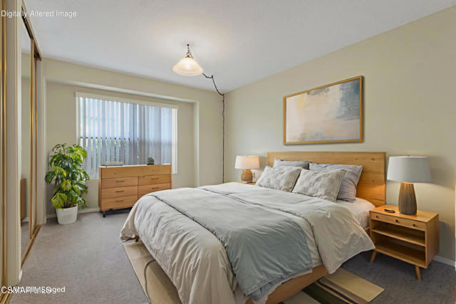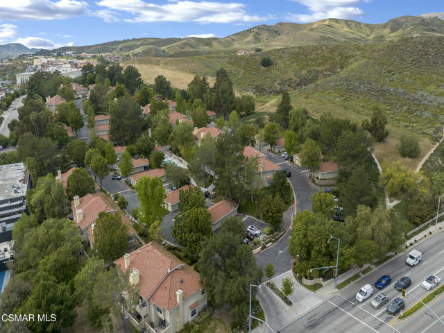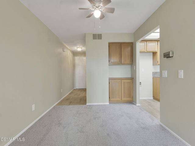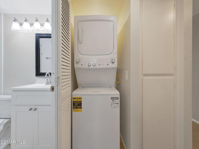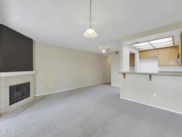 Located in the gated Canyon Club Villas community, this 1-bedroom, 1-bath condo offers 724 sq. ft. of living space with an open, studio-style layout designed for efficient, low-maintenance living. Entry is accessed by a short set of stairs leading down to the unit, complete with a screen door. Inside, light wood-like plank flooring runs through the entry, hallway, bathroom, and kitchen, while new carpet has been installed in the living area and bedroom. Neutral-toned walls and natural light create a clean and comfortable setting throughout. The open layout includes an entry coat closet and a dining nook with a built-in cabinet and ceiling fan with light, opening into the living area featuring a white tile gas fireplace and sliding glass door to a sunny private patio with a storage closet. Stucco and wood fencing provide separation, with vertical blinds on the windows and slider. The kitchen is finished with granite countertops and a breakfast bar for additional seating, along with a dishwasher, built-in microwave, and white 4-burner stove/oven. Down the hall, you'll find a linen closet and a convenient laundry closet with a stackable GE washer and dryer included. The bathroom has been updated with a white vanity, modern lighting, and a white subway tile shower with sliding glass doors, a shampoo niche, and glass tile accents. The bedroom features an overhead light, a full wall mirrored closet, and a window facing the front of the unit. Additional features include a tankless water heater, a one-car enclosed garage and an assigned parking space located nearby. The Canyon Club Villas community offers gated entry, a community pool and spa, and maintained common areas. Conveniently located near shopping, dining, parks, and schools, with easy access to the 118 Freeway, this condo offers a practical and well-connected Simi Valley location.
