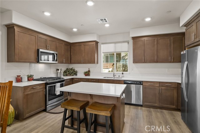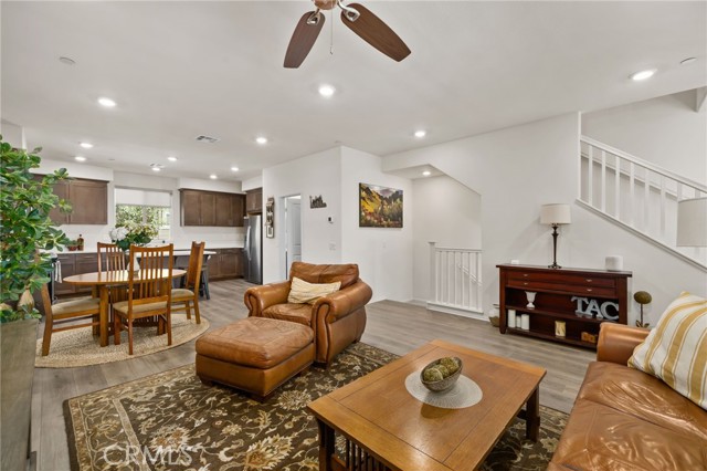 Welcome to Day Creek Square in Rancho Cucamonga! This beautifully maintained 2-bedroom, 2-bath condo with a separate office offers the perfect blend of comfort, style, and convenience. Step inside to a bright, open-concept layout featuring upgraded flooring, recessed lighting, and a spacious living area that flows seamlessly into the dining space and kitchen—ideal for both everyday living and entertaining. The modern kitchen is equipped with rich cabinetry, sleek countertops, stainless steel appliances, and a large center island with bar seating. A standout feature of this home is the dedicated office/bonus room, perfect for working from home, a creative space, or even a potential third bedroom option. Upstairs, the primary suite offers a peaceful retreat with ample natural light, a private balcony, and an en-suite bathroom with dual vanities and a walk-in shower. The secondary bedroom is generously sized and well-positioned for privacy. Enjoy indoor-outdoor living with a private balcony—perfect for morning coffee or relaxing evenings. Residents of Day Creek Square enjoy resort-style amenities including a sparkling pool, spa, outdoor lounge areas, and a beautifully maintained community park. All of this just minutes from Victoria Gardens, top-rated schools, shopping, dining, and easy freeway access. Turnkey, stylish, and ideally located—this is one you don’t want to miss.