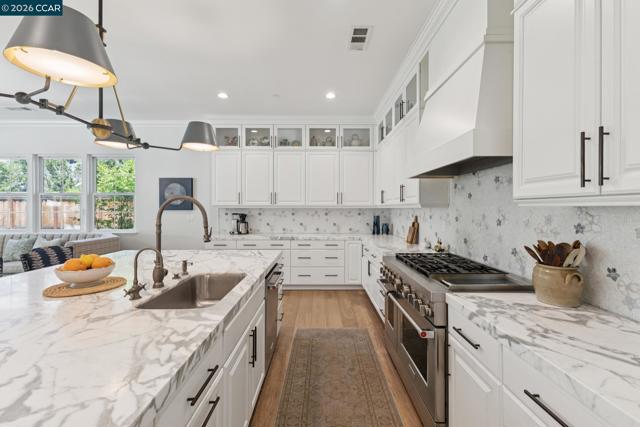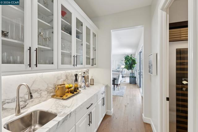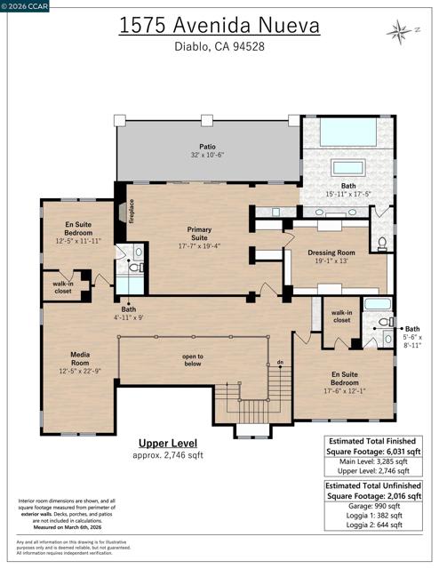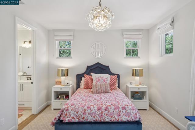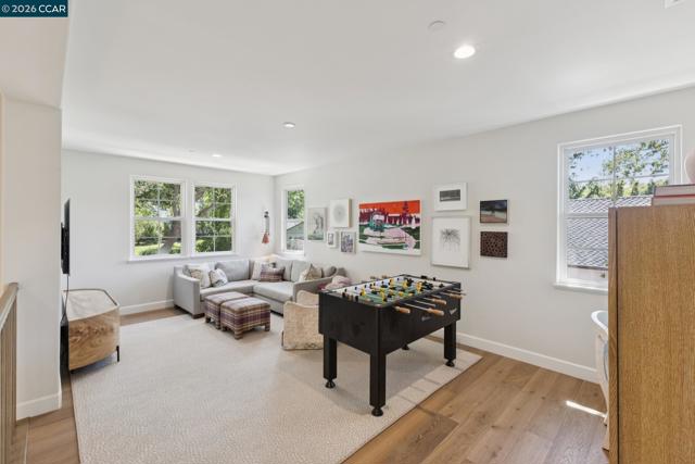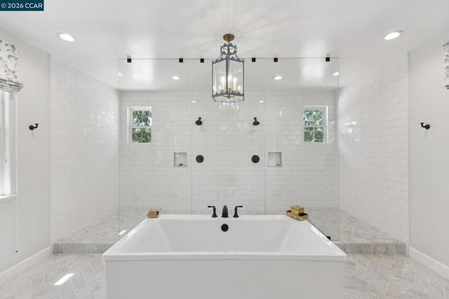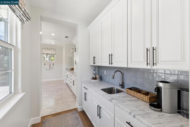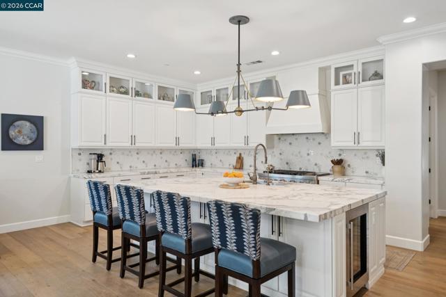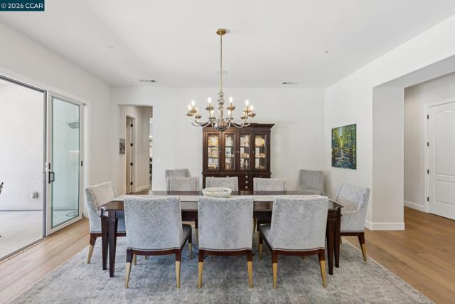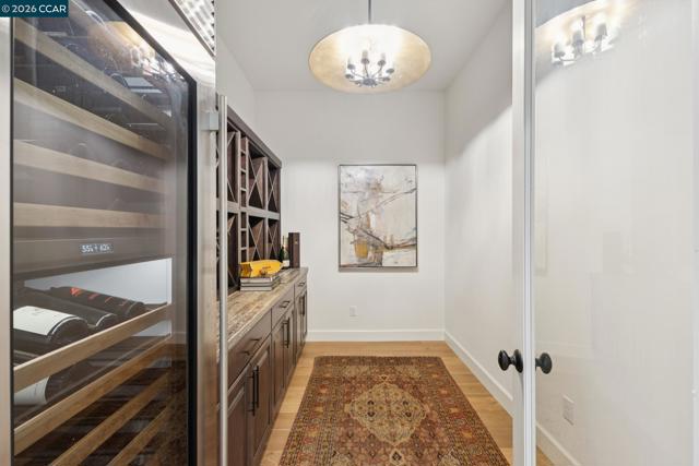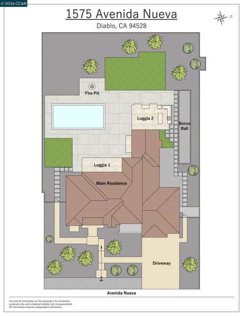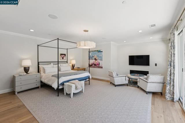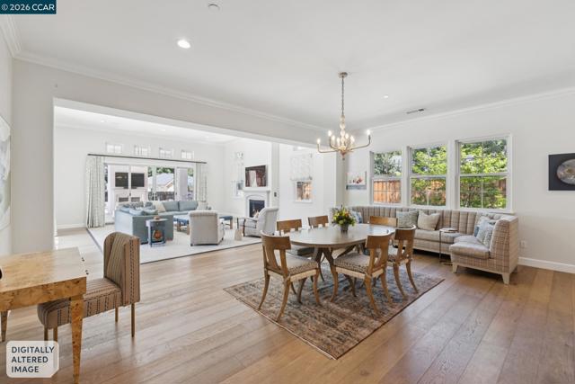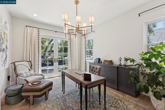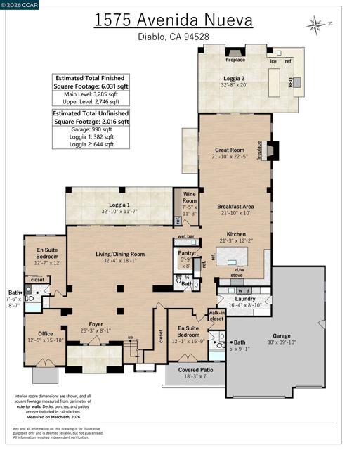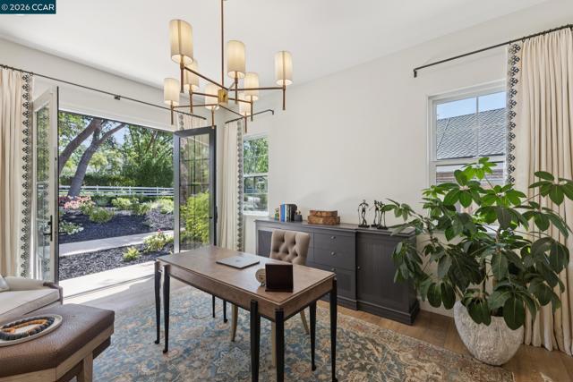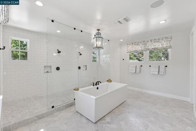 Mediterranean-inspired estate built in 2022 on a level .64-acre lot in a desirable lower Diablo location. Approx. 6,141 sq ft featuring 5 en-suite bedrooms and 5.5 bathrooms. Main level includes living and dining room with fireplace, open kitchen/family room with upgraded appliances (incl. wine refrigerator), office, wine room, and two en-suite bedrooms. Large glass doors provide seamless indoor/outdoor flow to resort-style backyard. Upper level offers two en-suite bedrooms, bonus area, and spacious primary suite with private deck, large walk-in closet, and luxurious bath. High-end finishes throughout including Calcutta and Carrara marble, titanium travertine, quartzite, and 100% natural white oak Provenza flooring. Backyard features pool/spa, outdoor kitchen, loggias with fireplace, bocce court, firepit, expansive lawn, and 20x40 artificial turf sport court. Exceptional property offering privacy, modern amenities, and ideal indoor/outdoor living. Start living the Diablo lifestyle.
