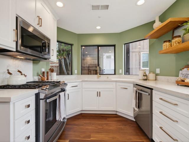 Welcome to your coastal retreat just minutes from the beach! This beautifully updated 3-bedroom, 2.5-bath home offers approximately 1,500 square feet of thoughtfully designed living space, filled with natural light and modern style. Step inside to discover 10 foot ceilings, brand-new flooring, and a remodeled kitchen with sleek finishes perfect for both everyday living and entertaining. Upstairs you will find spacious bedrooms each equipped with ceiling fans for year-round comfort. The primary suite offers a peek of the Ocean to start your day along with a fully remodeled bathroom complete with dual sinks and generous closet space. Enjoy true outdoor living with a charming patio area, a mature Avocado and Lemon tree plus towering Redwoods an ideal setting for relaxing and entertaining al fresco. Additional highlights include a Level 2 electric vehicle charger, solar panels on roof, an ADU style artist studio and three fruit trees in the front yard. Whether you're looking for a full-time residence or a weekend getaway, this home captures the essence of beachside living. Located just a few blocks to Sunny Cove beach, and only one block to Shoreline Middle School and Simpkins Swim Center. This home is walking distance to shopping, restaurants and a great commute location too!