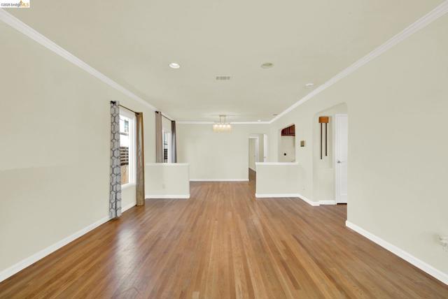 Located in the highly sought-after Estudillo Estates neighborhood, this charming and well-maintained 1946 home offers the perfect blend of character and modern updates. This 2-bedroom, 1-bath residence features a spacious, light-filled living area with hardwood floors, crown molding, and an open layout ideal for everyday living and entertaining. The updated kitchen includes rich cabinetry, granite countertops, and stainless steel appliances, while the remodeled bathroom showcases stylish finishes and custom tilework. Situated on a generous lot with a long driveway and detached garage, the property offers excellent potential for ADU, expansion, or additional parking (buyer to verify). A rare opportunity to own in one of San Leandro’s most desirable neighborhoods, close to downtown, shopping, dining, and major commute routes.