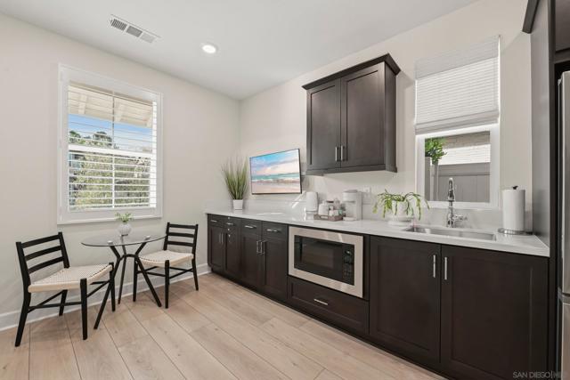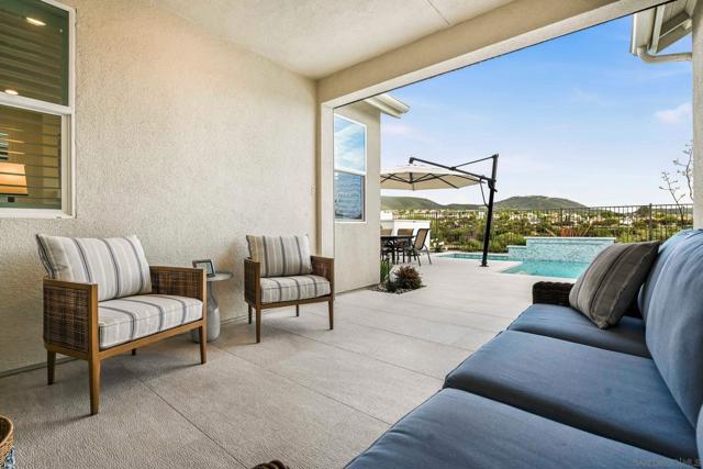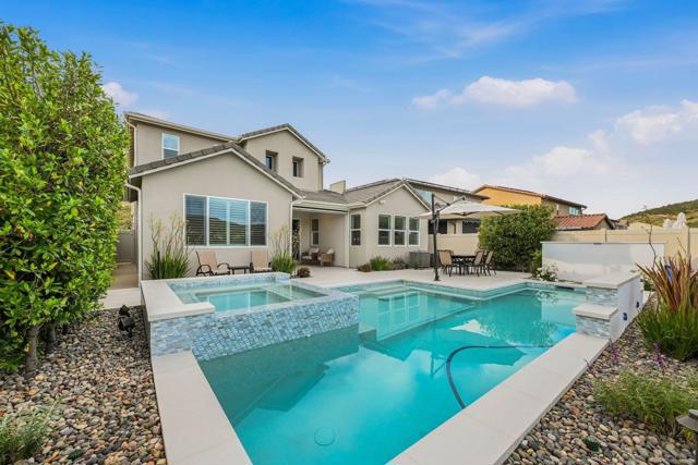 Welcome to this exceptional residence in the highly sought-after Skylark community of San Marcos. Built in 2023 and thoughtfully enhanced since, this home offers a refined blend of modern design, elevated finishes, and resort-style living. The owners have invested extensively, adding a stunning custom pool and spa, owned solar, and fresh interior and exterior paint. Carefully selected builder upgrades and post-purchase enhancements create a truly turnkey experience that feels both polished and intentional. A standout feature of the home is the attached ADU, designed with privacy in mind. Fully sectioned off with its own entrance, the space is ideal for multigenerational living, guests, or income potential. The shared walls have been upgraded with rock wool insulation, offering exceptional sound separation and comfort. The backyard is where this home truly comes to life. A beautifully designed California Room with a motorized screen enclosure creates a seamless indoor-outdoor transition, offering a comfortable, flexible space to unwind or entertain year-round. The landscape architect–designed grounds enhance privacy while prioritizing low-maintenance, fire-conscious living. Beyond, the property opens to a serene canyon setting with west-facing views of a nearby lake and distant ocean glimpses. As the sun sets, the backdrop transforms into a daily show of color and light. This is a rare opportunity to own a newer construction home elevated beyond the builder’s vision—where thoughtful upgrades, privacy, and views come together.
