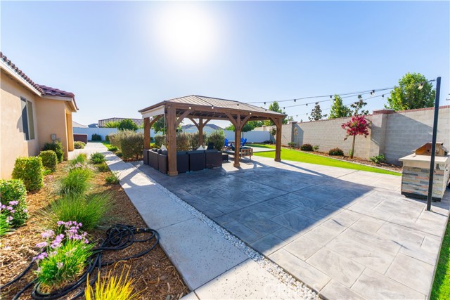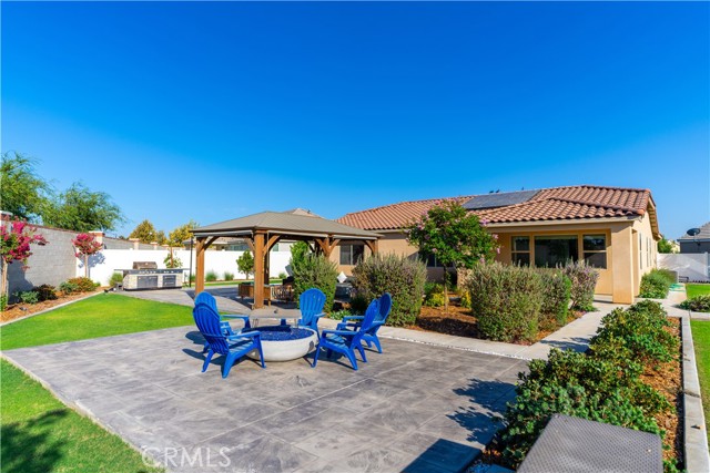 Rare oversized cul-de-sac property in the highly sought-after gated community of Highgate at Seven Oaks. Situated on nearly one-third of an acre, this 2022-built home offers a fully completed entertainer’s backyard, a standout feature compared to most new construction. Unlike builder inventory, this home is already upgraded, landscaped, and move-in ready — no dirt lot, no extra expense, no waiting. The Backyard Everyone Wants • Expansive stamped concrete patios • Custom pergola for shaded dining • Built-in KitchenAid BBQ • Dual fire pits • Large lawn (room for a pool) • Premium Bullfrog Spa ($15,000+ value) included • Oversized lot for privacy & flexibility. Designed for year-round entertaining and relaxation. Interior features a split-wing layout with soaring ceilings, large sliding doors to the backyard, modern quartz kitchen, 100” smart TV, and owned solar for low energy costs. Highgate offers gated security plus resort-style amenities: community pools, gym, pickleball & basketball courts, parks, and walking paths. Excellent schools and close to West Bakersfield shopping & dining. This rare larger lot with a completed backyard and premium upgrades is ready for you to simply move in and enjoy!