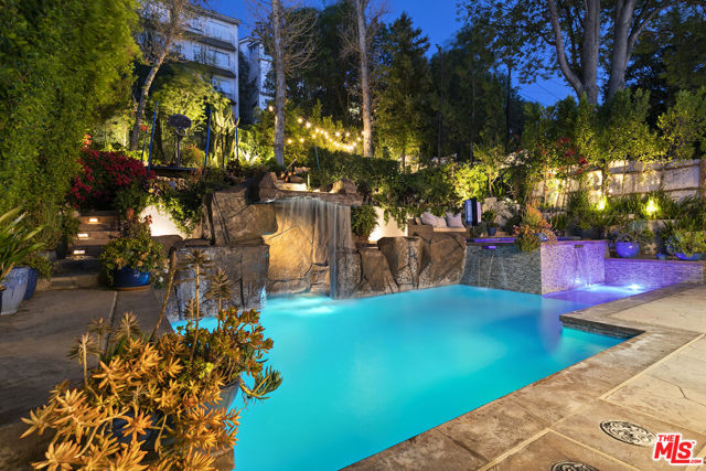 Nestled behind lush, manicured landscaping and commanding curb appeal that stops you in your tracks, this stunning south of the boulevard 4-bedroom, 3-bathroom residence is the rare combination of elegance, warmth, and effortless livability. Thoughtfully designed with multiple living areas including a formal living room, dining room, and spacious family room with custom built-ins. The updated kitchen features top-of-the-line appliances and opens directly to the backyard, creating a seamless indoor-outdoor flow. The private rear grounds are nothing short of spectacular, boasting a waterfall pool and spa, grassy area, and outdoor fireplace, ideal for relaxing or hosting year-round. One bedroom and one bathroom are conveniently located on the main level, with two additional bedrooms and a stunning primary suite upstairs. The primary retreat features an oversized walk-in closet with custom built-ins and a private balcony overlooking the lush backyard. Direct access garage that offers extra space for storage. This is not just a beautiful home. It's the one you've been waiting for. Photos are from previous listing.