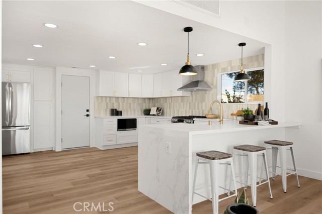 Ocean Views! Spanning over 1,600 square feet, this 3-bedroom, 2-bathroom home has been extensively and tastefully reimagined with a refined coastal charm and an open-concept flow that feels both elevated and effortless. Enjoy your scenic views wile being tucked tucked away at the end of a quiet cul-de-sac in the highly sought-after Monarch Summit I community, this exquisitely remodeled single-story residence delivers coastal luxury, thoughtful design, and captivating ocean-view moments. The chef’s kitchen is the undeniable centerpiece, featuring waterfall-edge quartz countertops, white-oak-style cabinetry, designer tilework, and stainless steel appliances, all seamlessly overlooking the living space. Natural light pours through energy-efficient dual-pane windows, illuminating wide-plank white-oak-inspired vinyl flooring, new recessed lighting throughout, and a beautifully refaced fireplace that anchors the living room with warmth and style. The luxurious primary suite offers serene ocean-view opportunity and direct access to a private outdoor retreat. The spa-inspired ensuite bath showcases a oversized walk-in shower, and curated designer fixtures, creating a true sanctuary. Secondary bedrooms are equally well-appointed, each featuring new ceiling fans and an abundance of natural light. Outdoor living is equally compelling. The exclusive front patio is a curated extension of the home, highlighted by new landscaping and wood-clad-inspired flooring, mirrored in the private backyard where ocean views, coastal breezes, and Southern California sunsets set the scene. Notable upgrades include brand-new air conditioning, a new water heater, elegant lighting fixtures, and a direct-access two-car garage with laundry. Residents of Monarch Summit I enjoy resort-style amenities including a pool, spa, and clubhouse, all surrounded by stunning ocean and mountain views. Ideally located just minutes from Laguna Niguel Golf Course, world-class beaches, upscale shopping, and dining, this home offers a rare opportunity to experience modern coastal luxury in one of Orange County’s most desirable communities.
