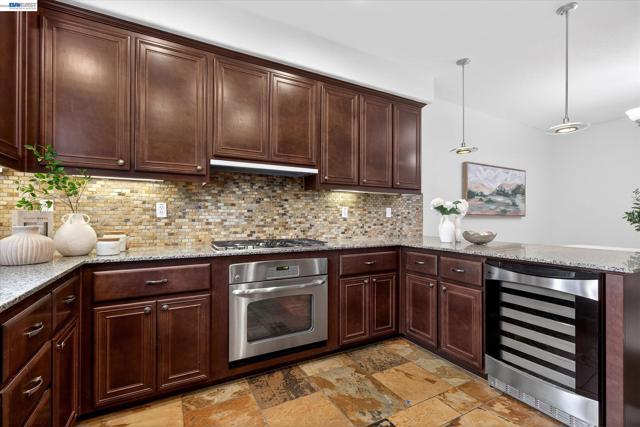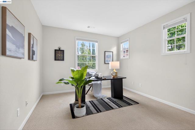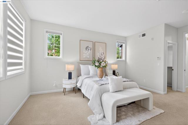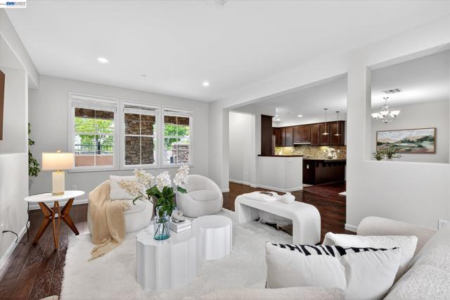 Discover the epitome of modern living in this stunning, light-filled residence located in the prestigious Sorrento community. As a highly coveted end-unit, this home offers unparalleled privacy and is bathed in natural light through expansive windows. The open-concept main level is an entertainer’s dream, featuring a chef’s kitchen equipped with slab granite countertops, a designer glass/stone backsplash, and a premium 6-burner gas range with a stainless steel hood. Two private, sun-drenched patios seamlessly extend your living space outdoors. The second level is thoughtfully designed with a sprawling primary retreat boasting dual walk-in closets and a spa-like bath with a soaking tub. Three additional generous bedrooms—including one en-suite—provide ample space for family or guests. The versatile top-floor oversized loft serves as a perfect media room, gym, or a potential 5th bedroom. Situated just steps from resort-style amenities including the clubhouse, pool, and gym, and minutes from top-rated schools, Iron Horse Trail, and premium shopping. Experience Dublin Ranch living at its finest.
