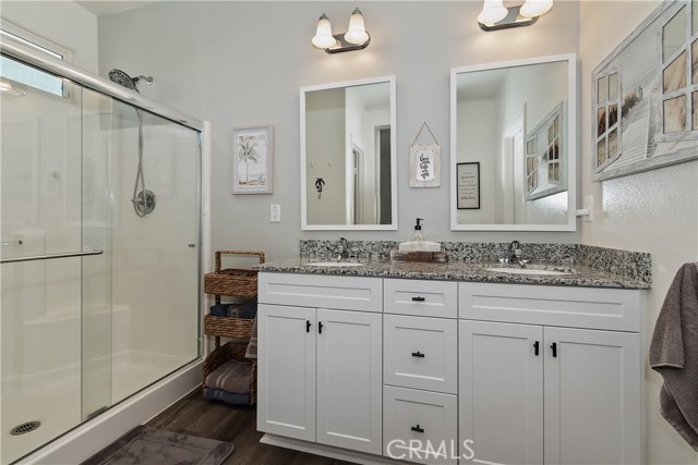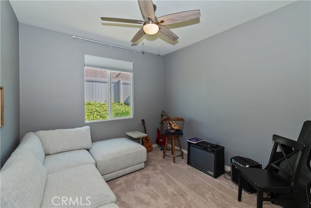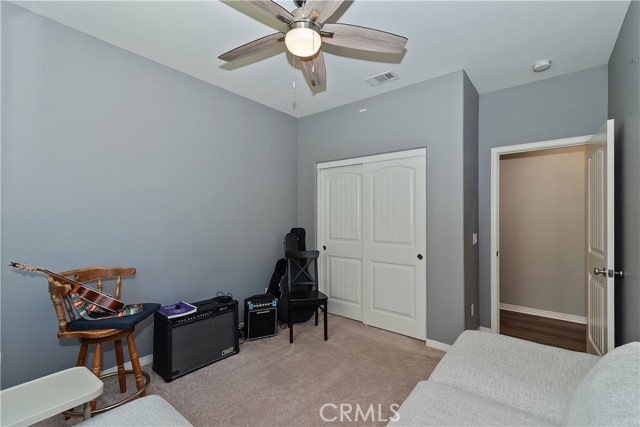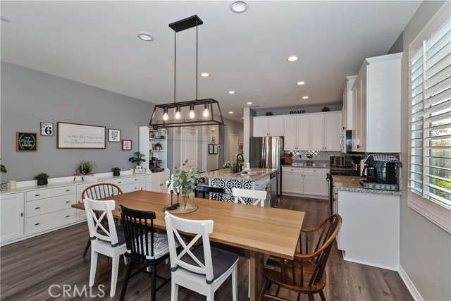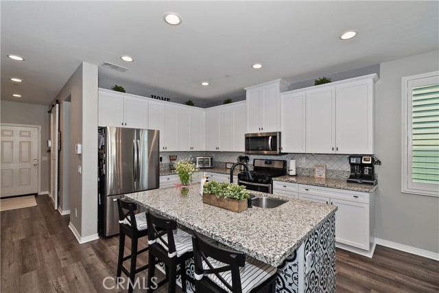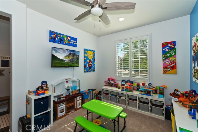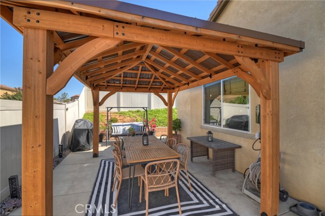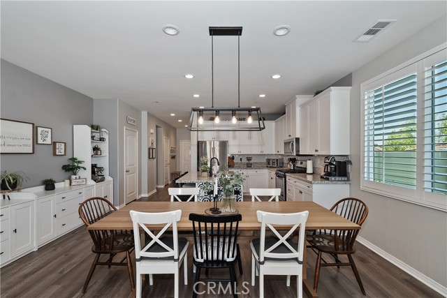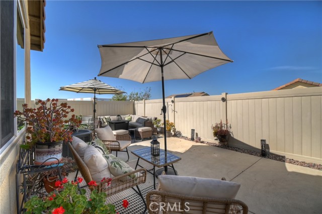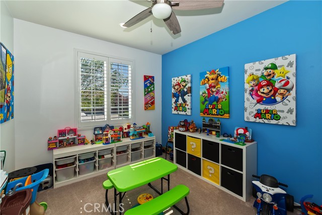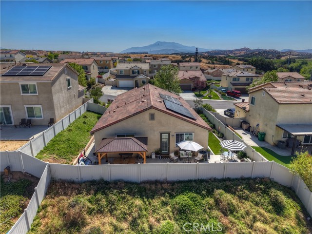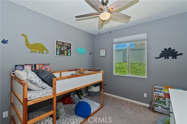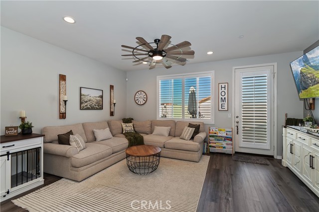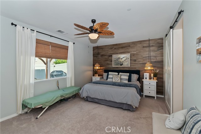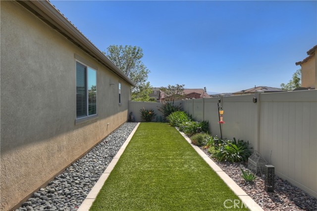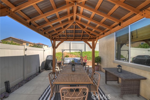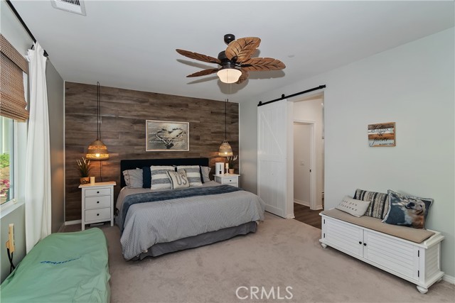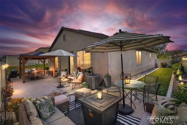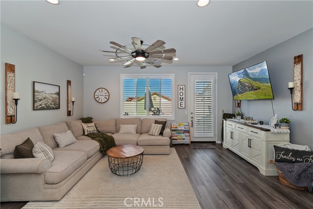 Come enjoy the luxurious lifestyle of the Olivewood community! This turnkey single-story home is nestled within a gated community and boasts 2 pools, including one with a swim playground and splash pad, a wade pool, a spa, BBQ areas, a volleyball court, and a stunning clubhouse available for residents to rent. Additionally, there's a separate park featuring a walking circuit, an exercise trail, and a basketball court! The home offers 4 bedrooms and 2 baths, adorned with luxurious laminate wood plank flooring, except for the carpeted bedrooms. Spanning 1,806 square feet, this light-filled open floor plan is enhanced by beautiful wood shutters throughout. Freshly painted with updated hardware, plantation shutters, and sliding barn doors, the expansive primary suite includes a large walk-in closet. The backyard showcases a brand new 14X10 gazebo on a private patio. With artificial turf in both the front and back, maintenance is a breeze. Both yards are equipped with drip systems and sprinklers. The paid-off solar system, complete with extra panels, means the seller's family of four rarely sees an electric bill! Conveniently located between the 10 and 60 freeways, this home is perfect for commuters.