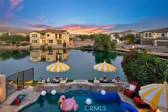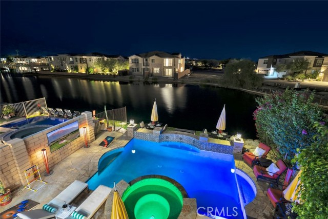 Welcome to a refined lakefront estate where luxury meets lifestyle, set within the prestigious gated community of Terra Lago. This exceptional 2-story residence offers 3 bedrooms, 3 bathrooms, and 2,157 square feet of thoughtfully designed living space, curated for both elevated everyday living and unforgettable entertaining. Recent upgrades and enhancements total nearly $60,000, including a newly installed HVAC system, upgraded pool equipment, and a custom TV feature wall, along with an optional arcade-style game room that adds another layer of entertainment. From the moment you arrive, the home reveals itself as an entertainer’s dream. The outdoor setting is nothing short of a private resort, where a custom saltwater pool and spa take center stage, surrounded by expansive lounge areas, outdoor misters, a fire pit, and a fully equipped built-in barbecue. A covered TV lounge and multiple dining spaces create the perfect backdrop for hosting, from elegant evening gatherings to vibrant weekend celebrations, all enhanced by sweeping lake and mountain views. Inside, the home continues to impress with a seamless blend of sophistication and comfort. The open-concept layout is complemented by a custom-built bar, creating a natural gathering space, while high-end finishes and thoughtful upgrades elevate every corner. The primary suite offers a serene escape, complete with a spa-inspired bathroom, generous walk-in closet, and a private balcony overlooking the water, an ideal setting for quiet mornings or sunset unwinding. Designed with both luxury and income potential in mind, this residence currently operates as a high-performing, turnkey Airbnb, generating impressive revenue while accommodating up to 10 guests. Nearly all furnishings are included, offering a seamless transition for continued rental success or immediate personal enjoyment. Positioned alongside the renowned Terra Lago Golf Course, this property offers a rare combination of resort-style living, striking natural surroundings, and proven investment performance. Whether hosting unforgettable gatherings or enjoying quiet lakeside moments, this is a home that delivers a truly elevated living experience.