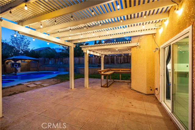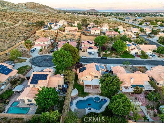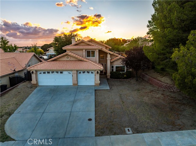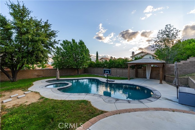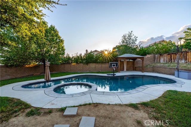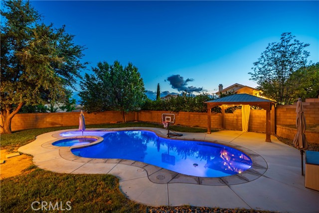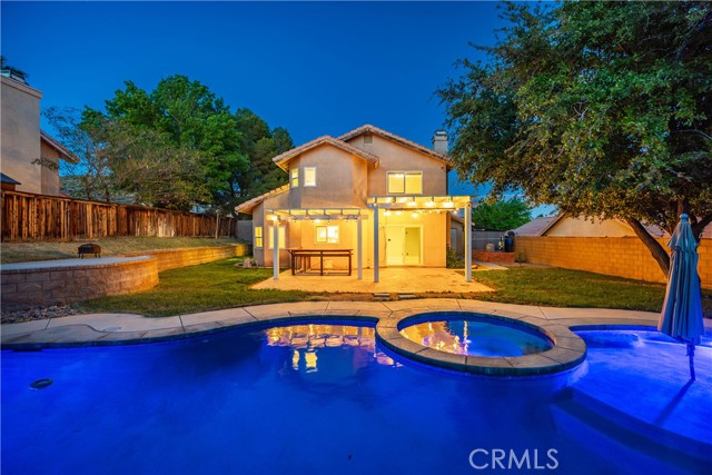 ***LIVE BEAUTIFULLY*** Welcome to this upgraded Rosamond two-story home w/ a pool & spa and a 3 car garage! Step inside to a grand entryway featuring soaring ceilings and a stunning chandelier, leading into a spacious formal living room with vaulted ceilings and an abundance of natural light. The family room offers a cozy fireplace, direct backyard access, and opens to the remodeled kitchen, creating an ideal space for everyday living and entertaining. The kitchen showcases quartz countertops, stainless steel appliances, a large center island, tray ceilings, and recessed lighting. Adjacent is a separate dining area with vaulted ceilings, modern chandelier lighting, and beautiful backyard views. Downstairs includes a full bedroom and bathroom, perfect for guests or multi-generational living, along with a laundry room featuring an upgraded barn door. Upstairs, the expansive primary suite offers a walk-in closet and a private bathroom with dual vanities, a large soaking tub, and a walk-in shower. Two additional bedrooms and another full bathroom complete the upper level. The backyard is an entertainer’s dream with a sparkling pool and spa, a cabana-style gazebo with lighting, a covered patio, and a spacious grassy area. Pool, spa, 3 car garage, and upgraded indoor and outdoor living make this home a standout!