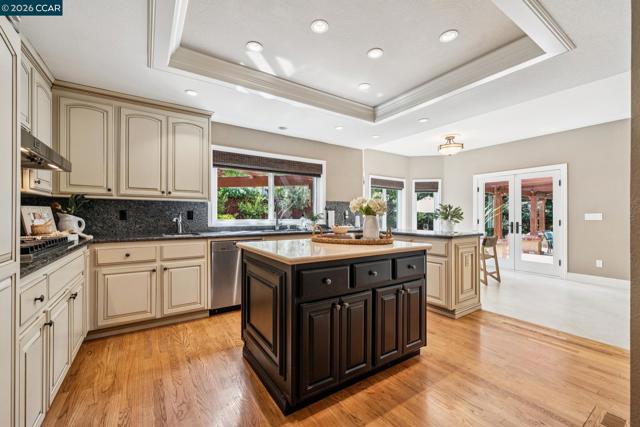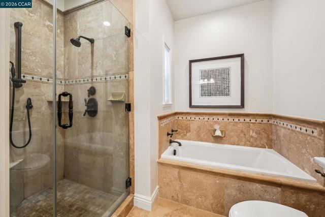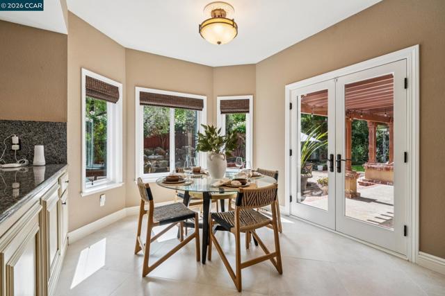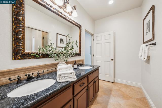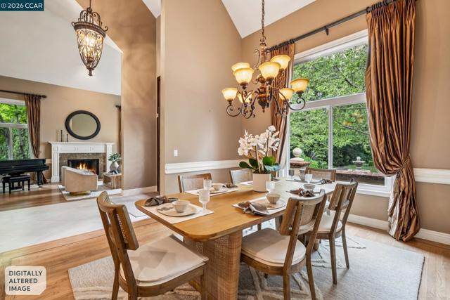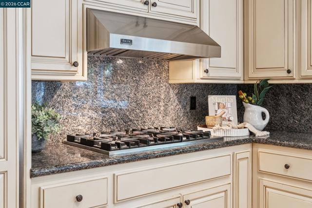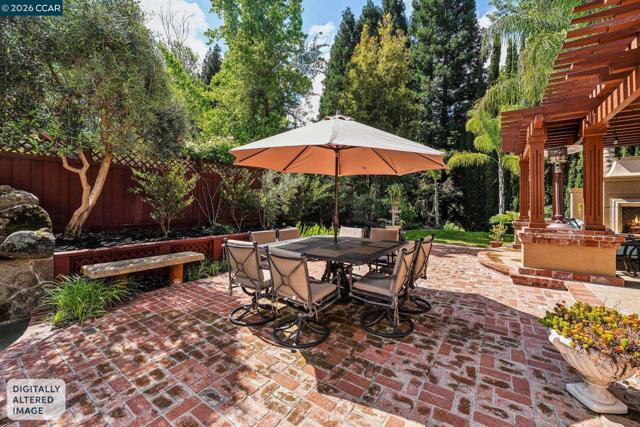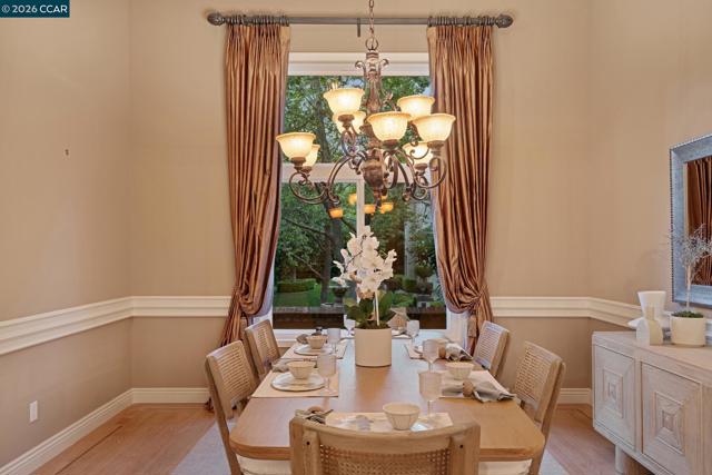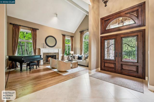 Prepare to be captivated by this distinguished custom Blackhawk estate. Grand entrance welcomes you w/ soaring vaulted ceilings, creating an embrace of luxury as you step into the home. The heart of the home, a gourmet kitchen, showcases exquisite granite & marble counters, a professional Viking 6-burner cooktop & dual ovens, Sub-Zero refrigerator & a butler's pantry for seamless entertaining. Architectural details abound, w/ striking beams & intricate millwork enhancing the home's character. Enjoy gatherings in the formal dining & living rooms with views from every window. The extra-large mudroom/laundry room offers practical convenience. Formal first-floor office, featuring French doors to a charming front patio, provides a refined workspace w/ a lovely view.The first-floor also offers versatility w/ an expansive guest suite, and a large Jack-and-Jill bathroom connecting two bedrooms. Upstairs, discover a serene primary suite, an elegant updated high-end custom bathroom. The enchanting backyard is an oasis for relaxation & entertainment, boasting a fireplace, multiple sitting & dining areas nestled within lush landscaping. Adding a touch of unique charm, a personal vineyard graces the property. This exceptional home offers a lifestyle that blends refined living w/ joyful moments.