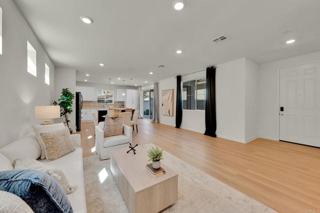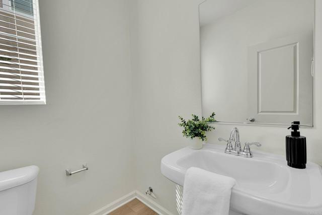 This beautiful 3-bedroom, 2.5-bath home in the sought-after Park Circle community is move-in ready and packed with upgrades. Brand-new luxury vinyl plank flooring flows throughout the main level, kitchen and half bathroom. Upstairs find a spacious primary suite with dual sinks, a walk-in shower and two spacious closets. This home also features a dedicated laundry room upstairs. The backyard includes a paved seating area and a low maintenance turf lawn. Enjoy reduced energy bills with a solar power purchase agreement with a low monthly payment. Step outside and enjoy everything Park Circle has to offer — resort-style pool, clubhouse, basketball courts, playgrounds, dog parks, and over 8 miles of scenic trails, all with a low monthly HOA. Tucked in the rolling hills of North San Diego County, enjoy all the benefits of San Diego county but with small-town charm right outside your door.