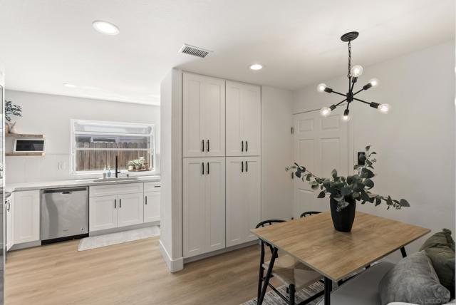 Turn-key Imperial Beach home in a prime location, just a few blocks from the beach, estuary, Veterans Park, and the library. Built in 2009, this property offers the advantage of newer construction with upgraded systems, providing added efficiency and reliability compared to many homes in the area. Thoughtfully updated throughout, the home features new luxury vinyl flooring, fresh carpets upstairs, an open-concept layout, and a fully renovated primary suite on the entry level. The primary includes a spacious walk-in closet, oversized shower, and direct access to a private patio. The layout creates a natural flow between the living area and outdoor spaces, ideal for indoor-outdoor use and entertaining. The kitchen and bathrooms showcase marble finishes, designer fixtures, and stainless steel appliances. All bedrooms are generously sized and include walk-in closets, plus a dedicated office adds flexibility for a variety of uses. Step outside to a freshly landscaped backyard with turf and trees, designed for low-maintenance upkeep, while the manicured front yard enhances curb appeal. An upstairs balcony offers an additional space to relax and enjoy the coastal setting. Complete with a two-car garage and A/C, this move-in ready home offers a rare combination of size, condition, and location that is not often available in this pocket of Imperial Beach.