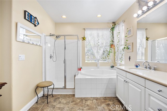 Welcome to City in the Hills, where scenic views, comfort, and style come together. This beautifully designed home features an open layout with a stunning stone fireplace as the focal point of the living area, flowing seamlessly into the dining space and kitchen with granite countertops and stainless-steel appliances. A downstairs bedroom and full bath offer flexibility for guests or a home office. Upstairs, two bedrooms share an adjoining bath, while the spacious primary suite features a private balcony with breathtaking hill views. The en-suite includes dual sinks, a soaking tub, and separate walk-in shower. Enjoy zoned cooling for efficiency and outdoor living with dual covered patios, a firepit area, and low-maintenance landscaping. Located in one of Bakersfield’s most desirable communities—don’t miss this opportunity!